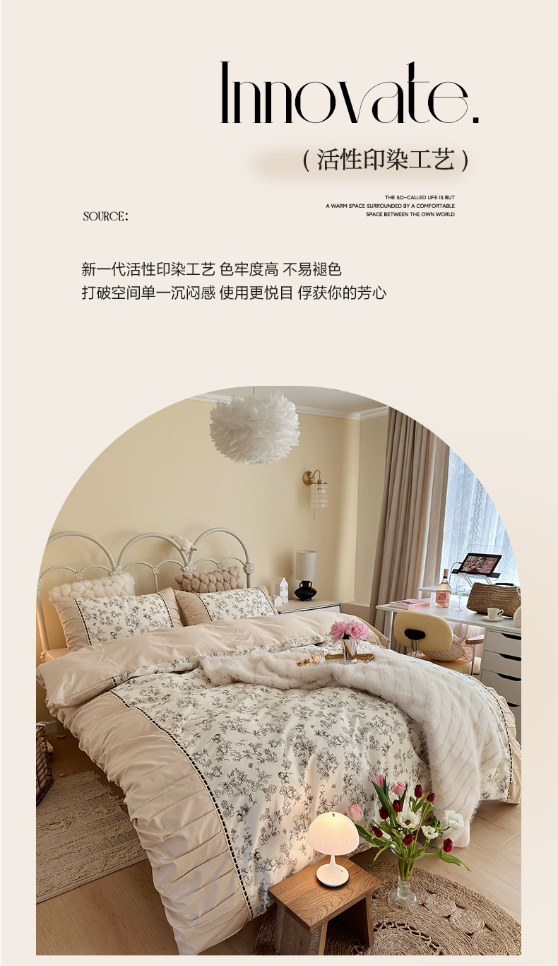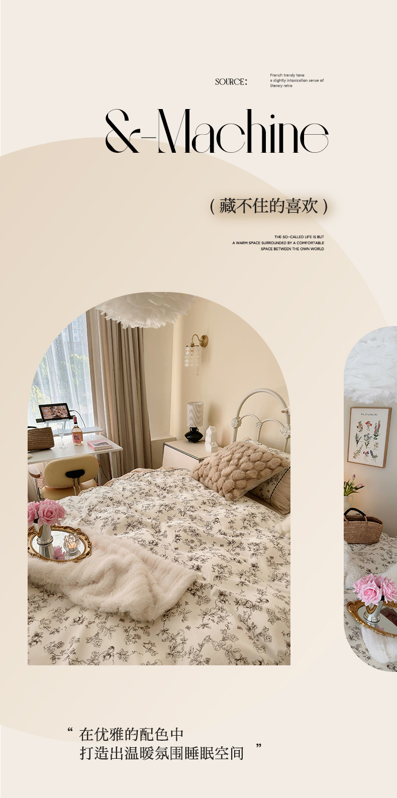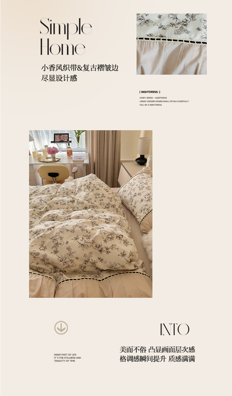 晨希家居 2024新款复古法式全棉印花四件套 晚风告白