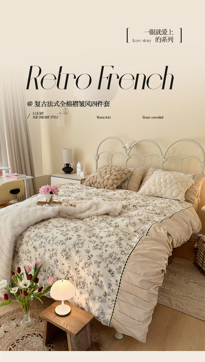 商品名称:晨希家居 2024新款复古法式全棉印花四件套 晚风告白