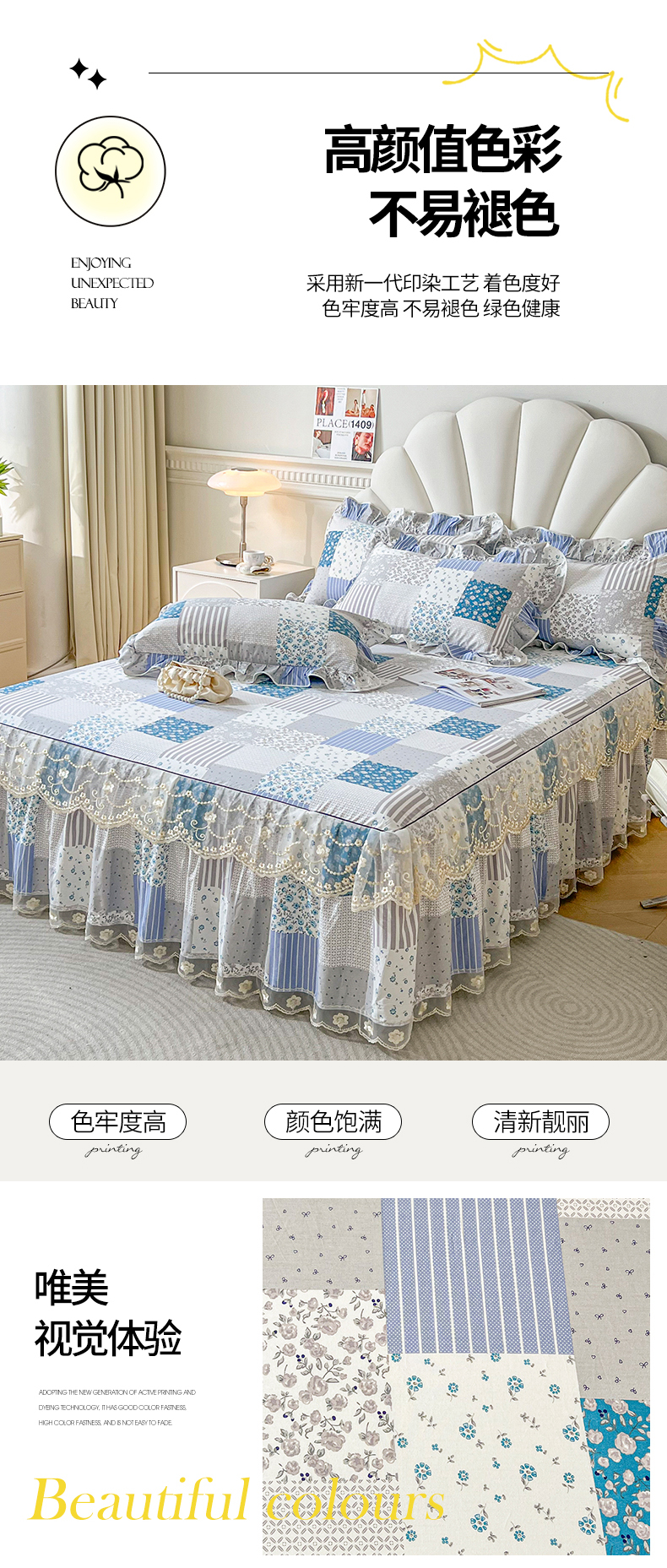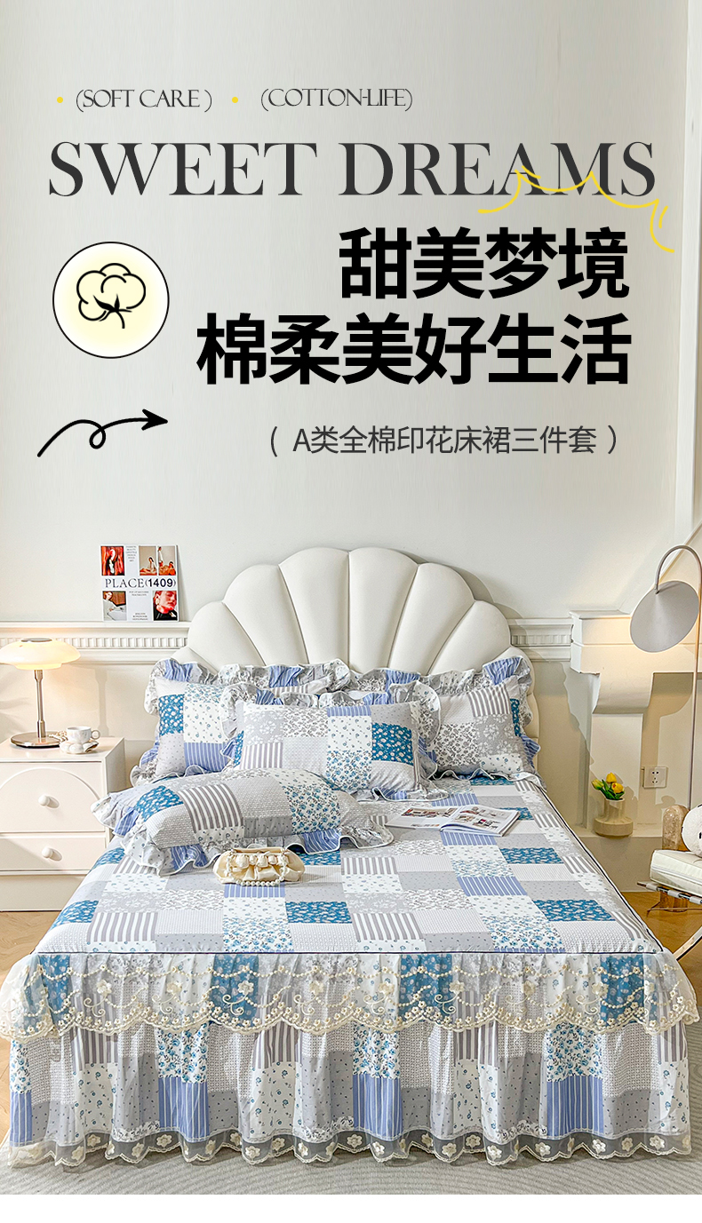 • 91家纺网 家纺一手货源 找家纺 宜凡家纺 2024新款全棉印花单层床裙系列三件套 亚瑟的梦