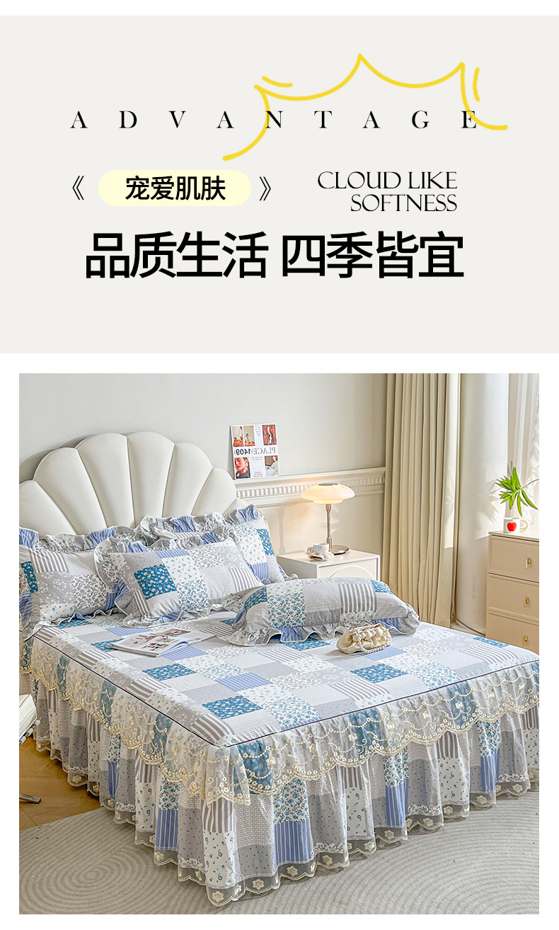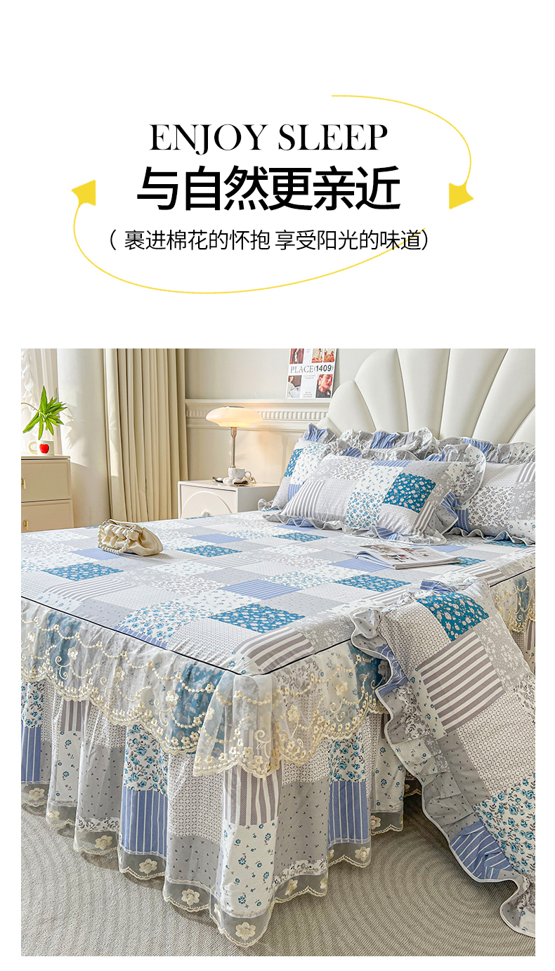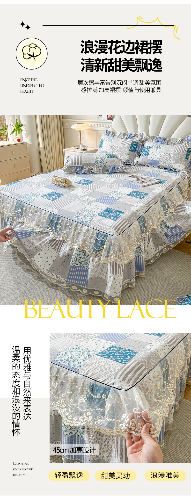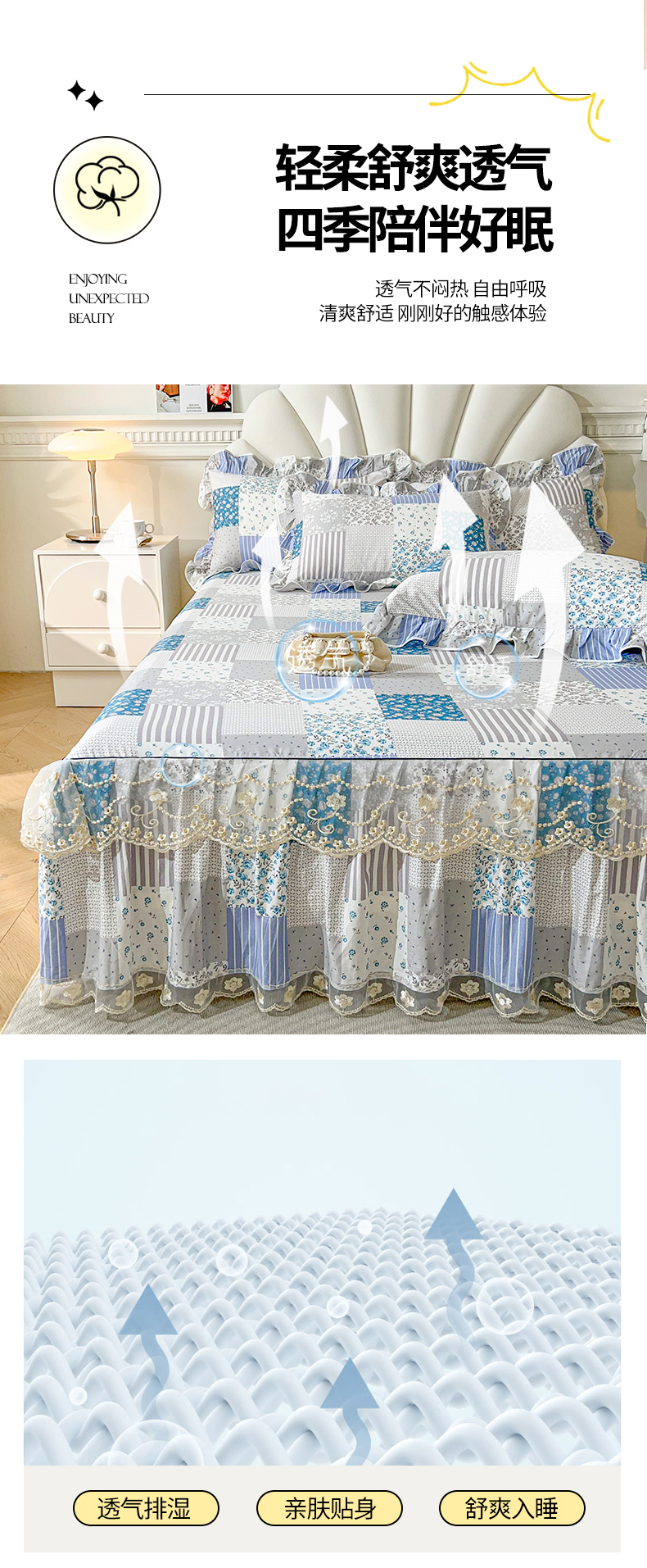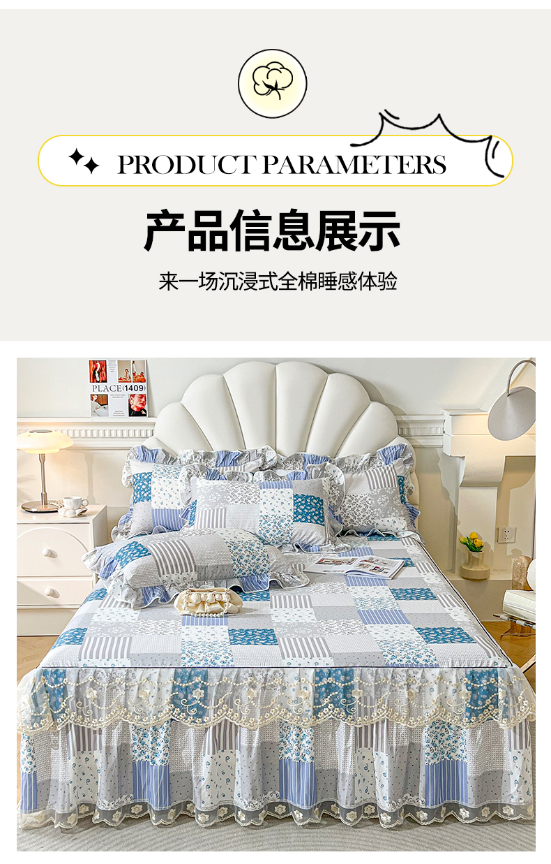 宜凡家纺 2024新款全棉印花单层床裙系列三件套 亚瑟的梦