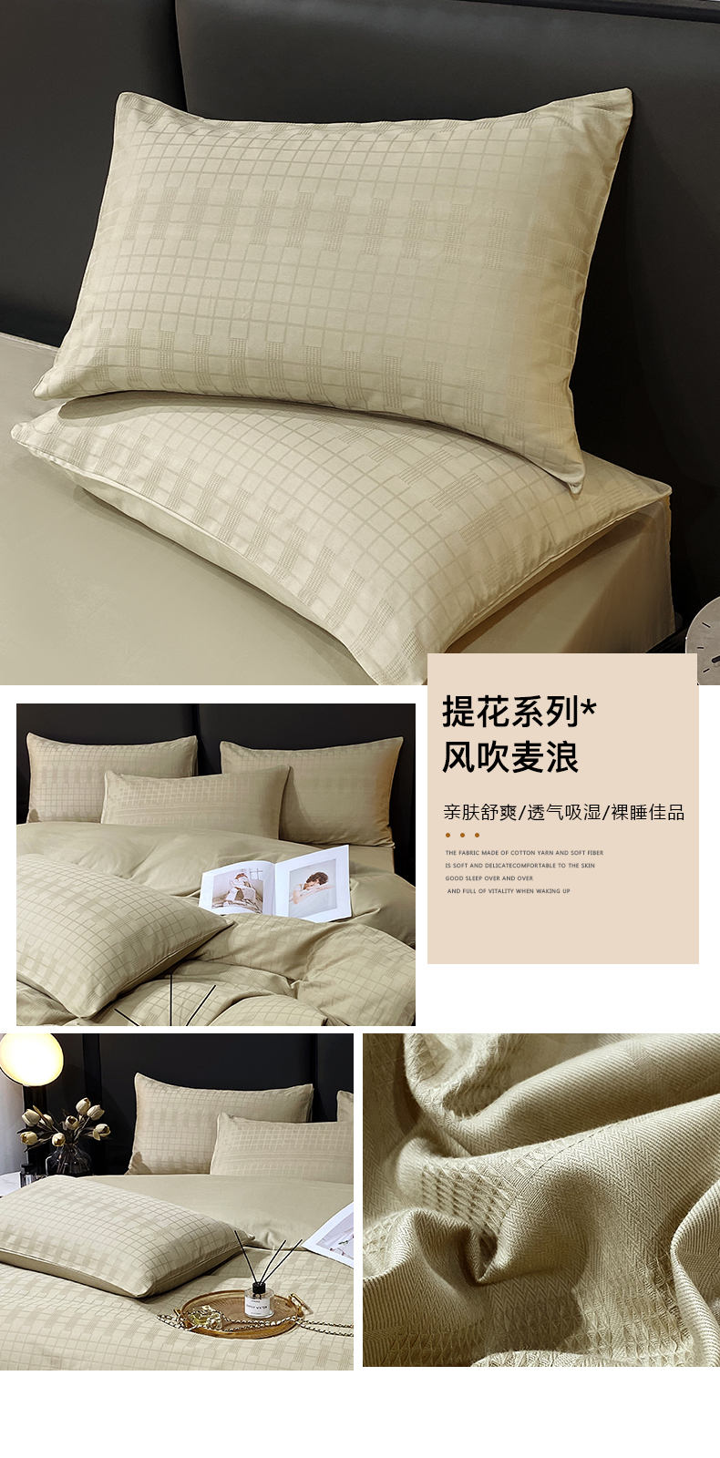 商品名称:(总)金鑫汇 2024新款提花小方格全棉套件单品系列-单枕套
