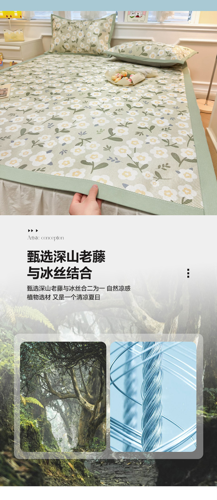 商品名称:慕尚 2025新款800D冰藤凉席 小碎花
