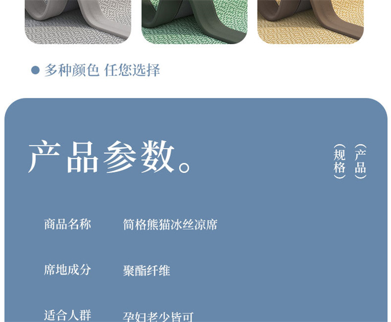 商品名称:孩子王家纺 2024新款简格刺绣熊猫款系列冰丝凉席 简格熊猫-绿