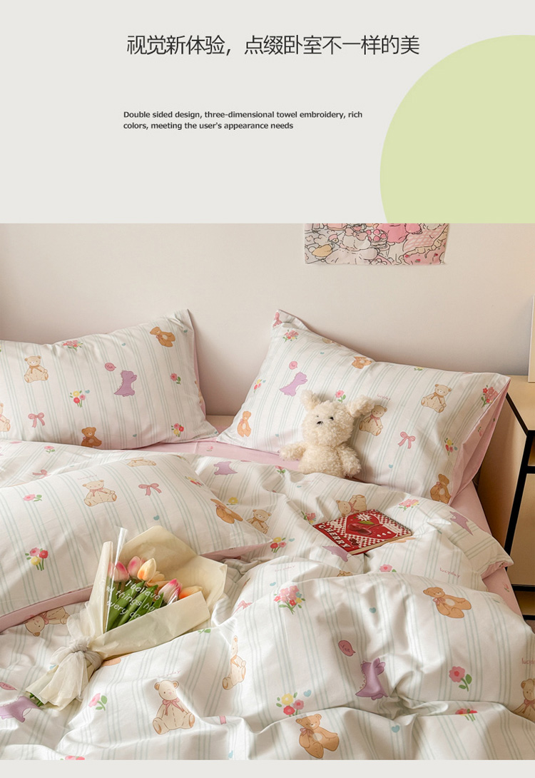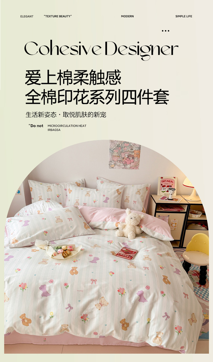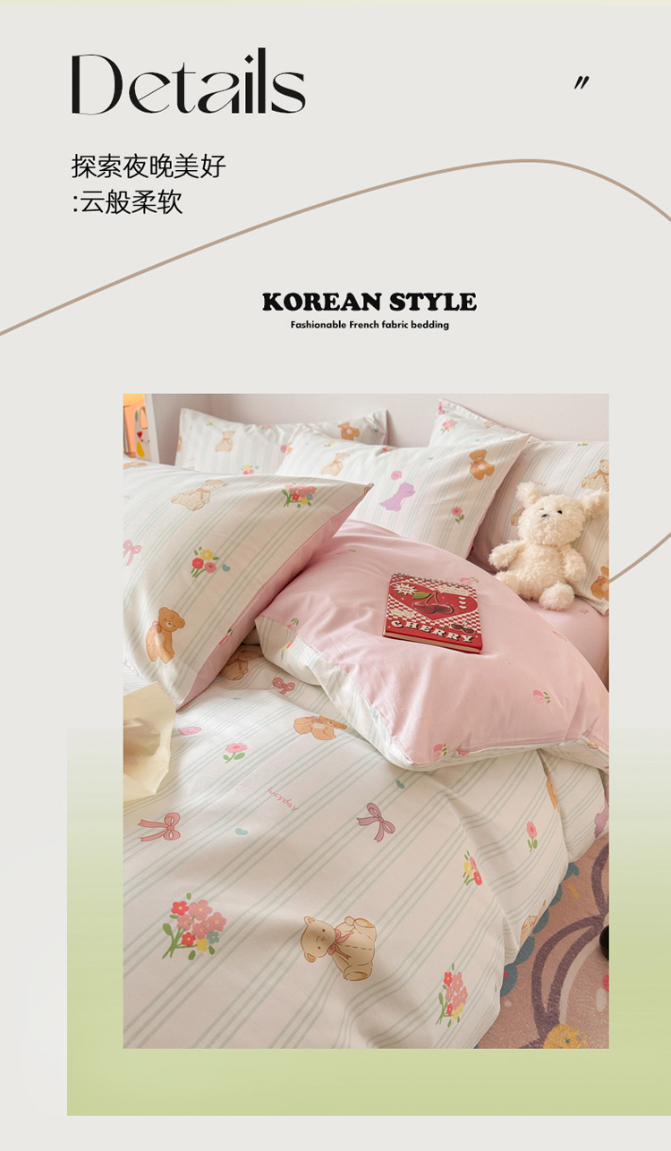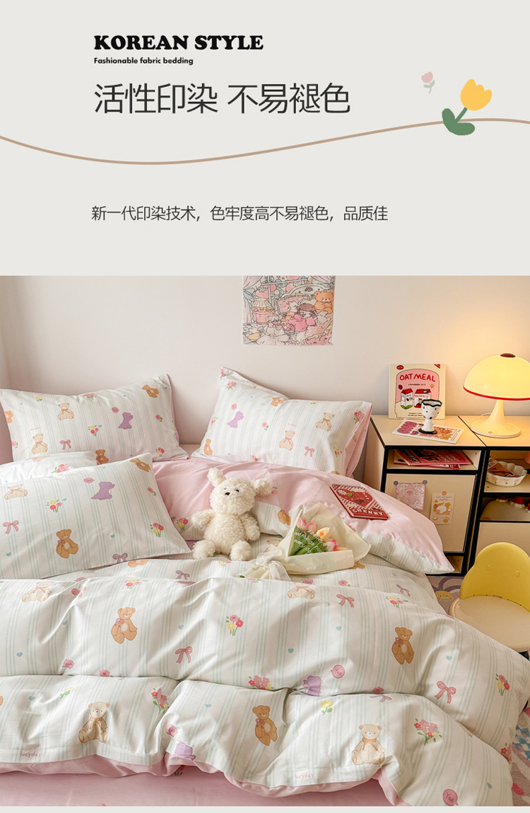 当前位置: 91家纺网 > 商品网购 > 床品套件 > 四件套 > 全棉普通四件套 > 慕尚 2025新款13070全棉小清新四件套 bear熊