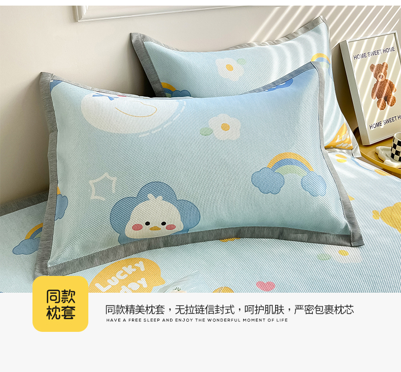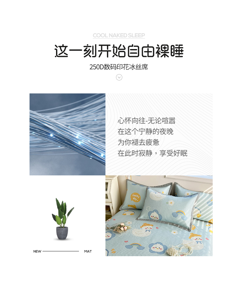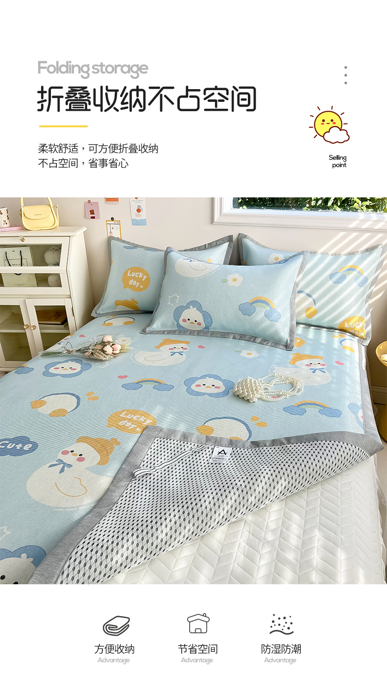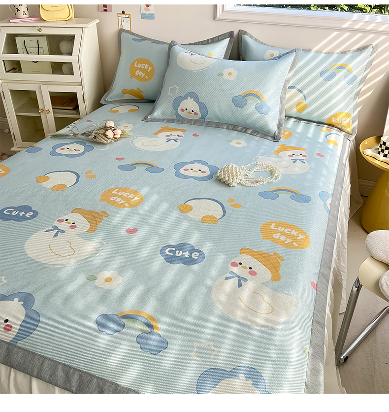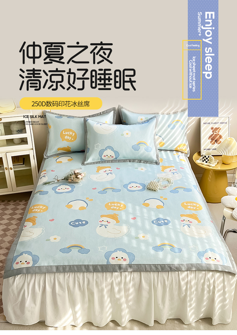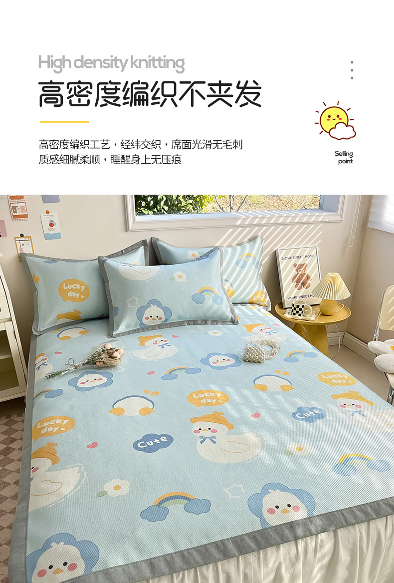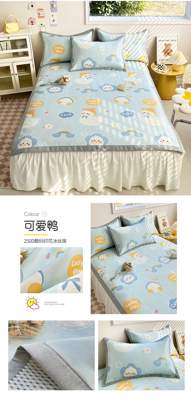 商品名称:懒猫家纺 2024新款250D数码印花宽边圆网冰丝席 可爱鸭