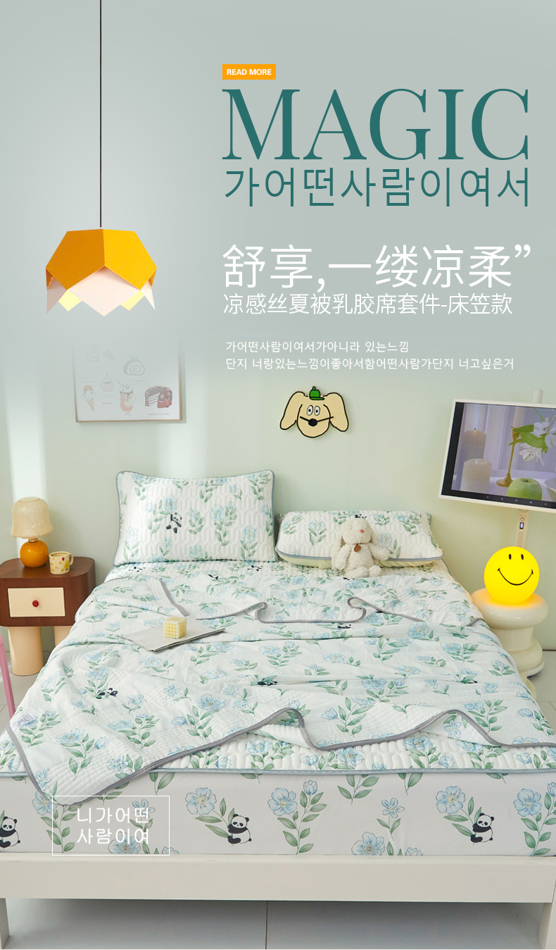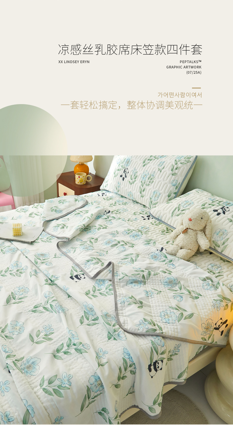商品名称:LIFE.丽芙 2024年新品0.4乳胶凉席加厚床笠款三件套+凉感丝夏被可组合四件套-图片一 熊猫乐园