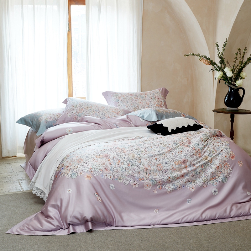 嘉恋家纺 2024新款东帝兴100支天丝棉数码印花四件套 丁香紫