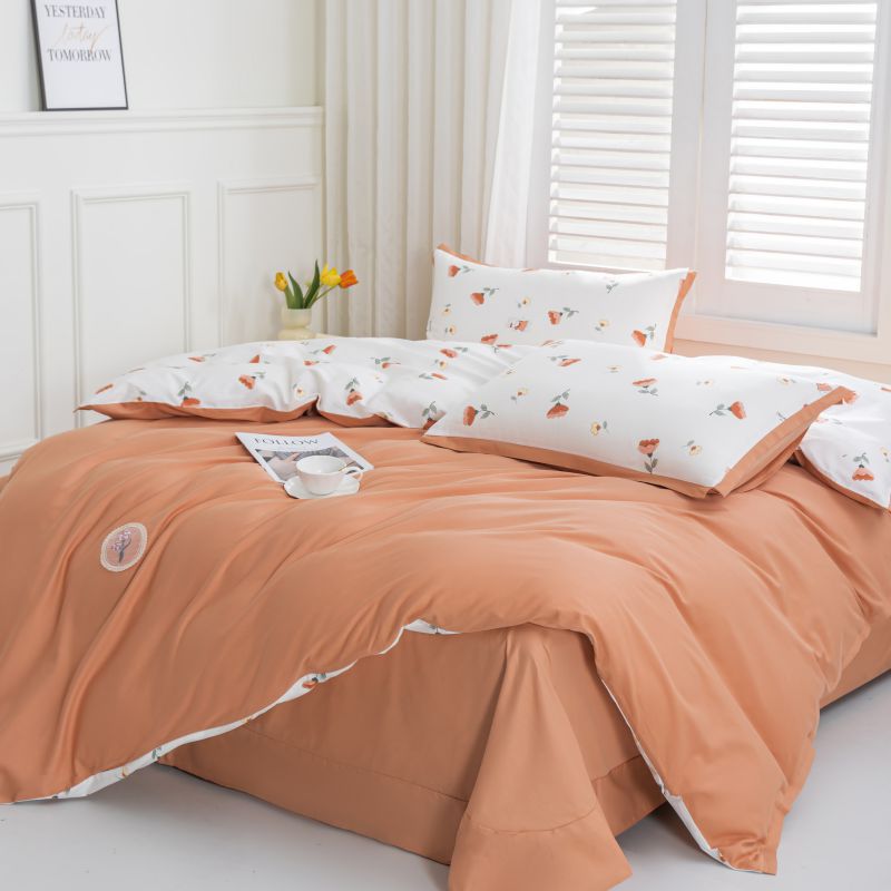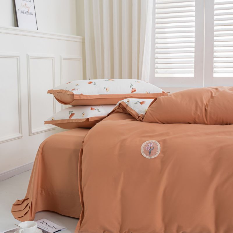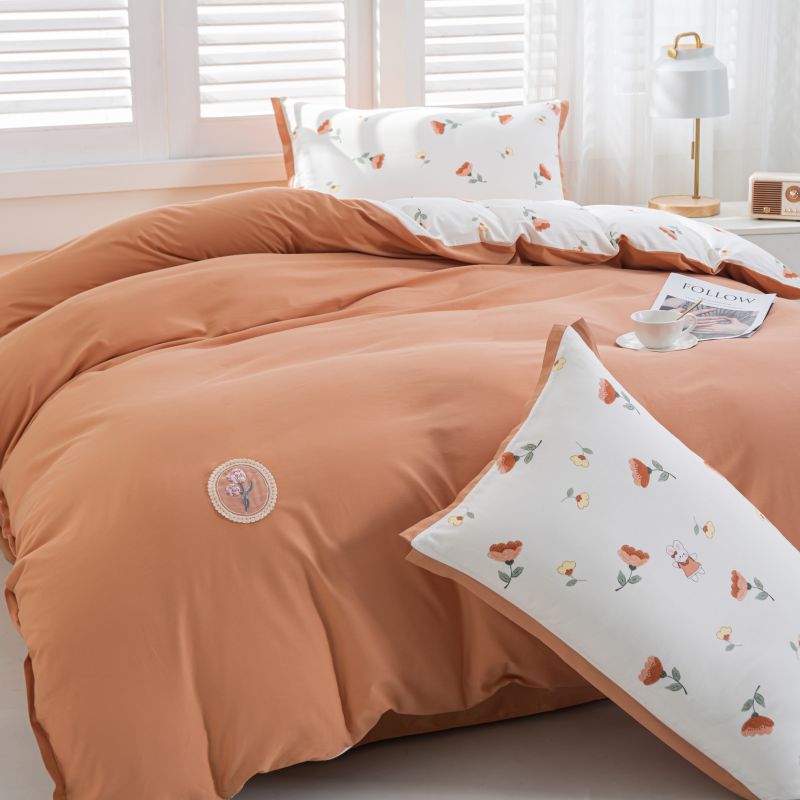 (总)优姿家纺 2026新款全棉拼接绣花四件套,繁花粉,繁花灰,繁花桔,繁花蓝,繁花绿,繁花紫