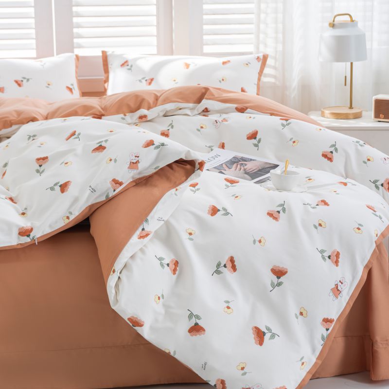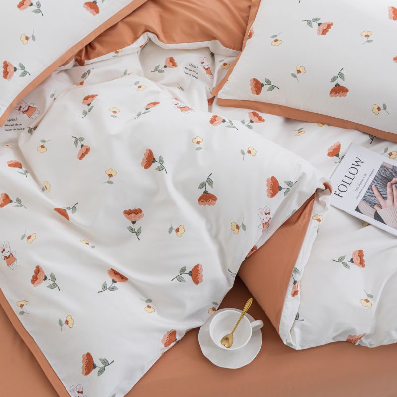 优姿家纺 新款纯棉长绒棉小清新ins风印花四件套-系列一 花香兔