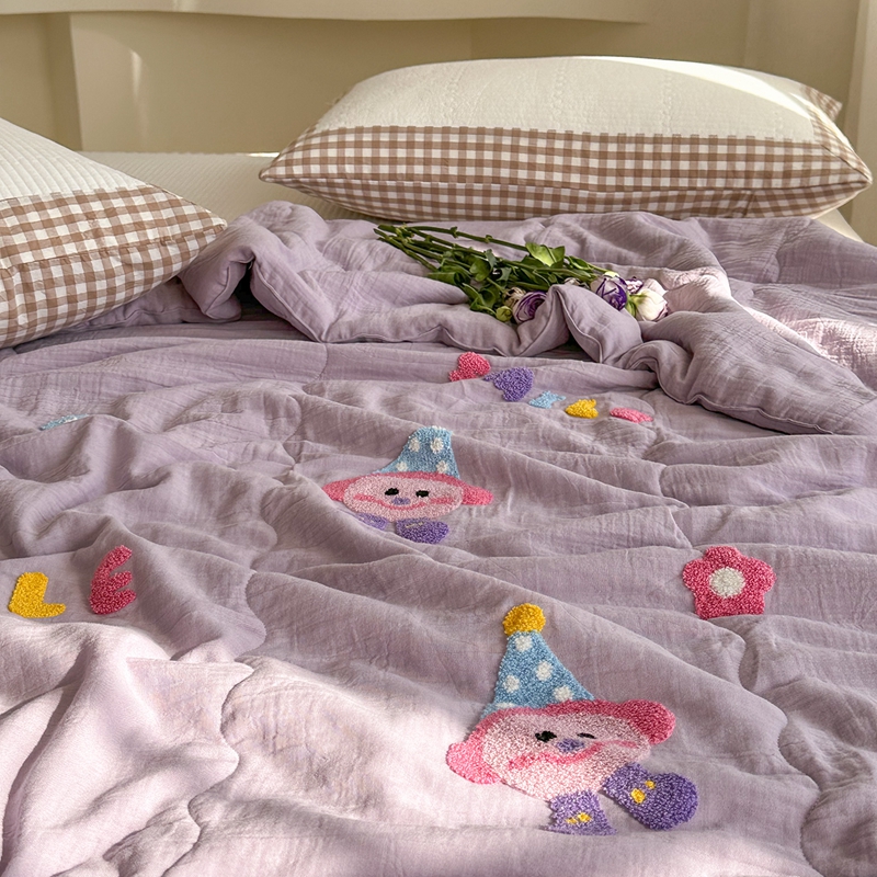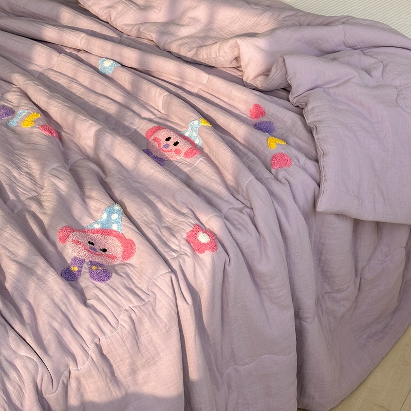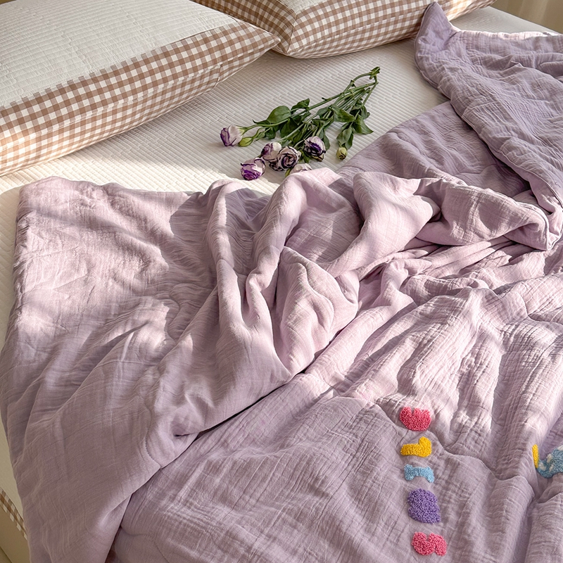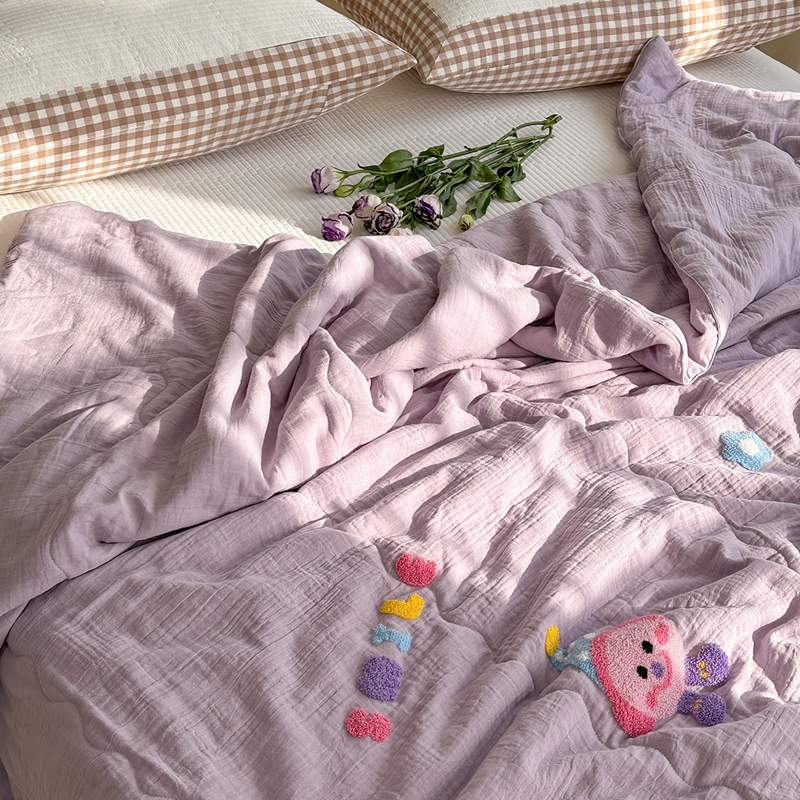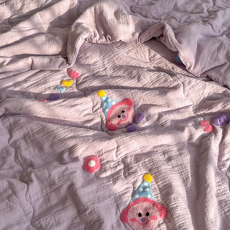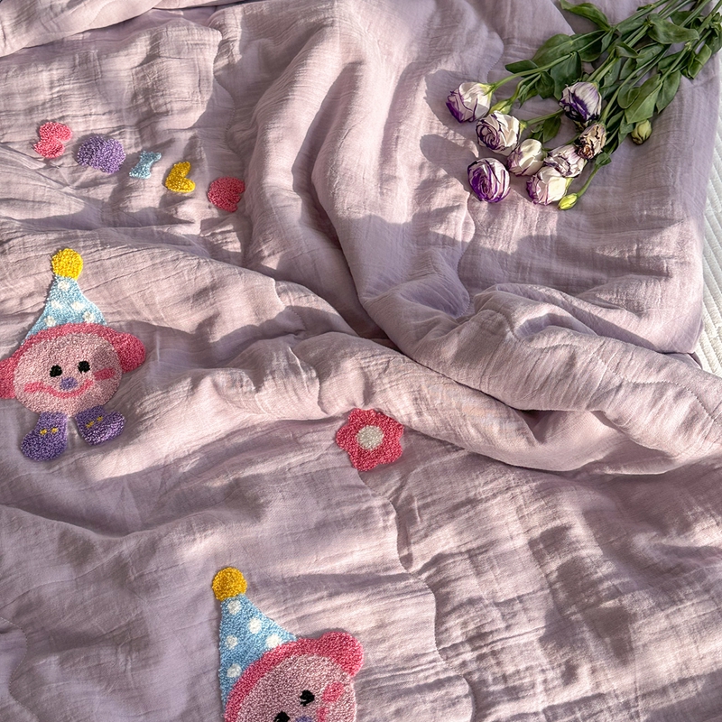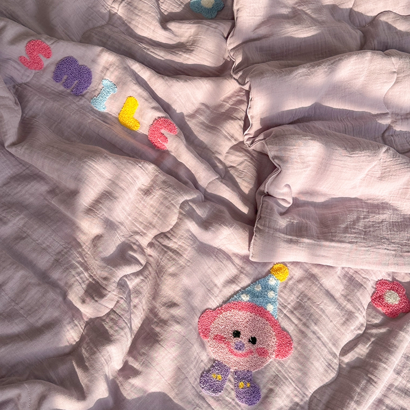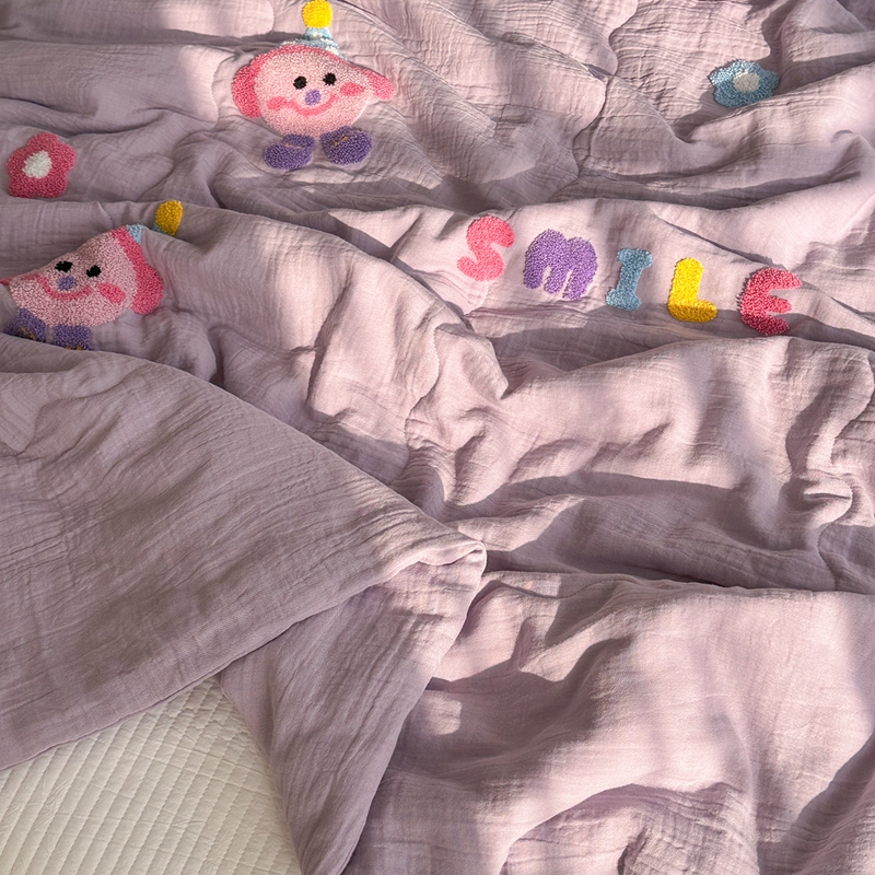 洋铭区(原狠狠爱)2024新款皱皱纱绣花夏被 微笑派对