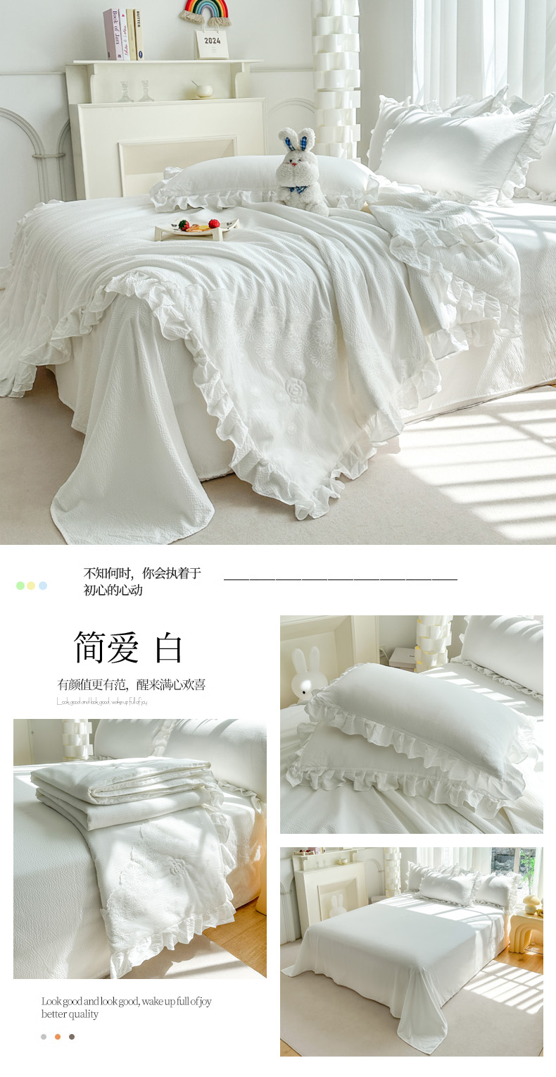 唐人居 2025新款韩版花边泡泡纱夏被四件套--简爱 简爱 白