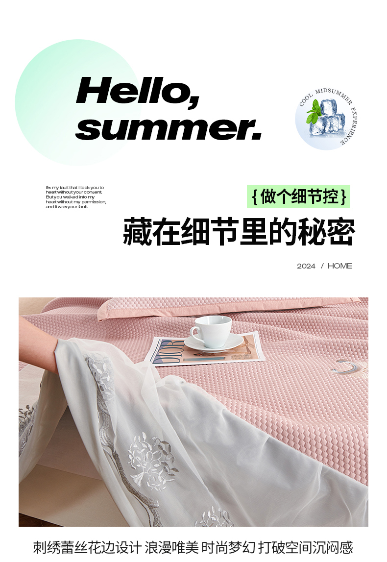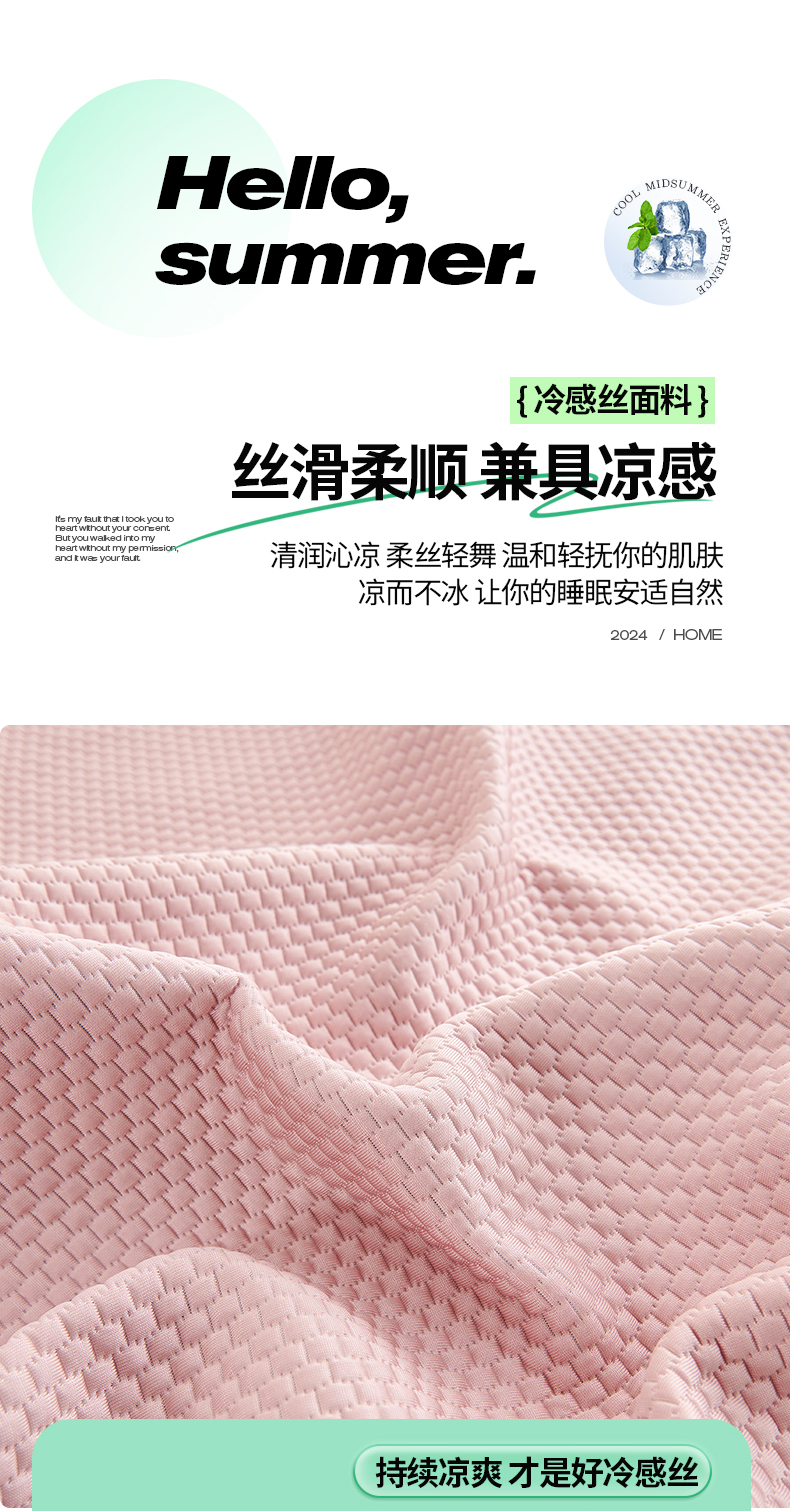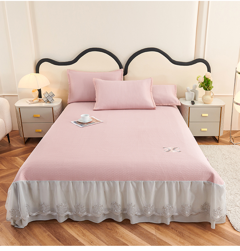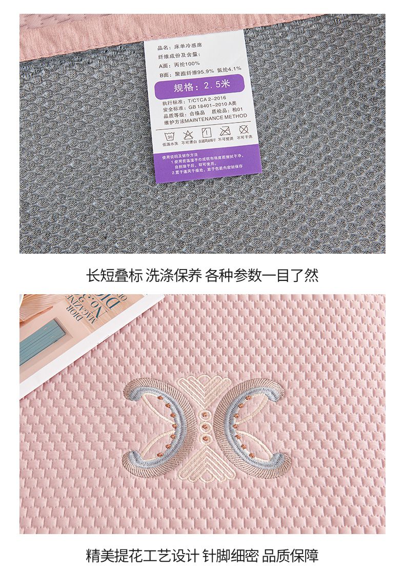 商品名称:宜派家纺 2024新款雪花冷感席三件套床裙款 凤尾-粉