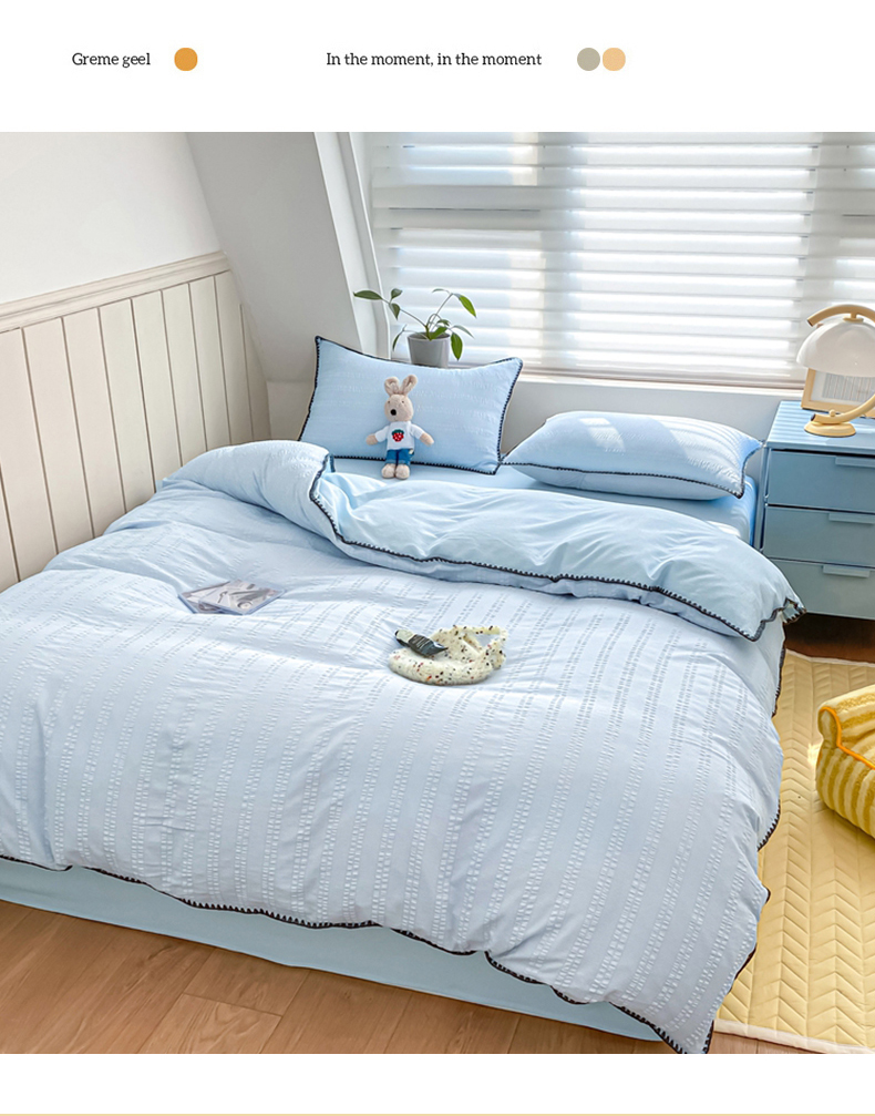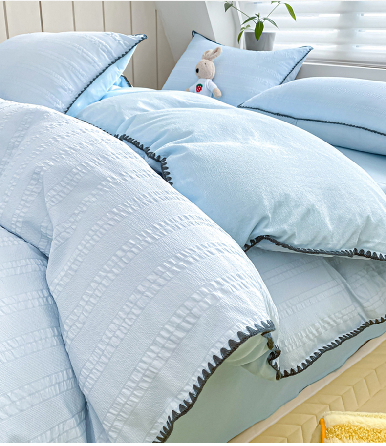 羋多 2024新款贝壳边雨泡泡棉泡泡纱双层纱四件套 天空蓝