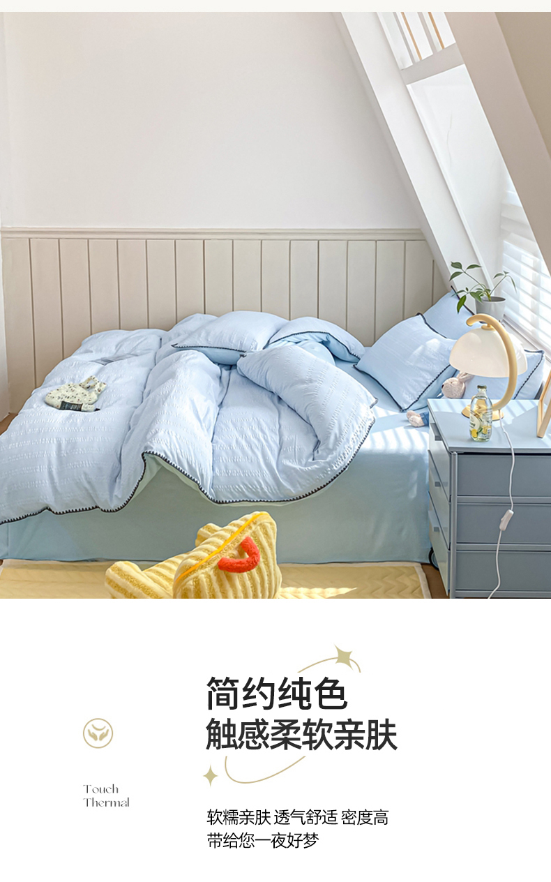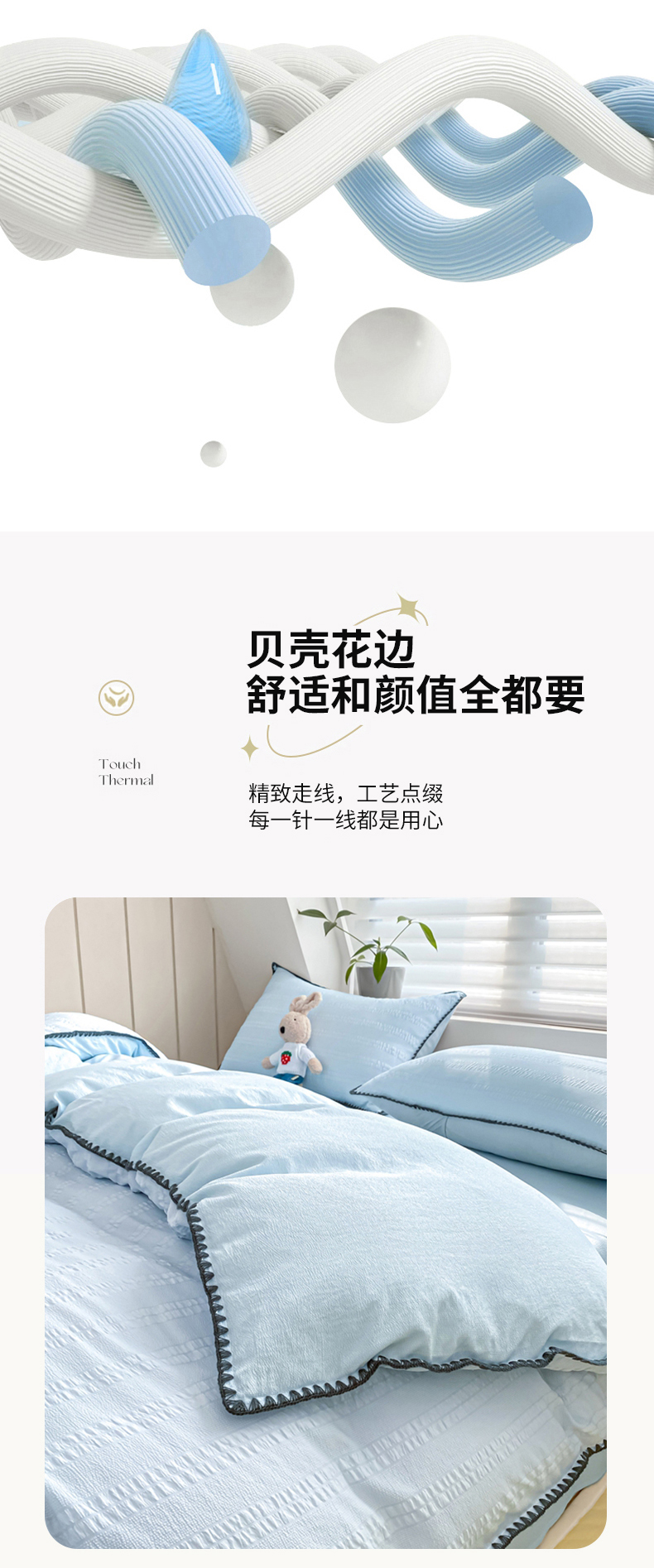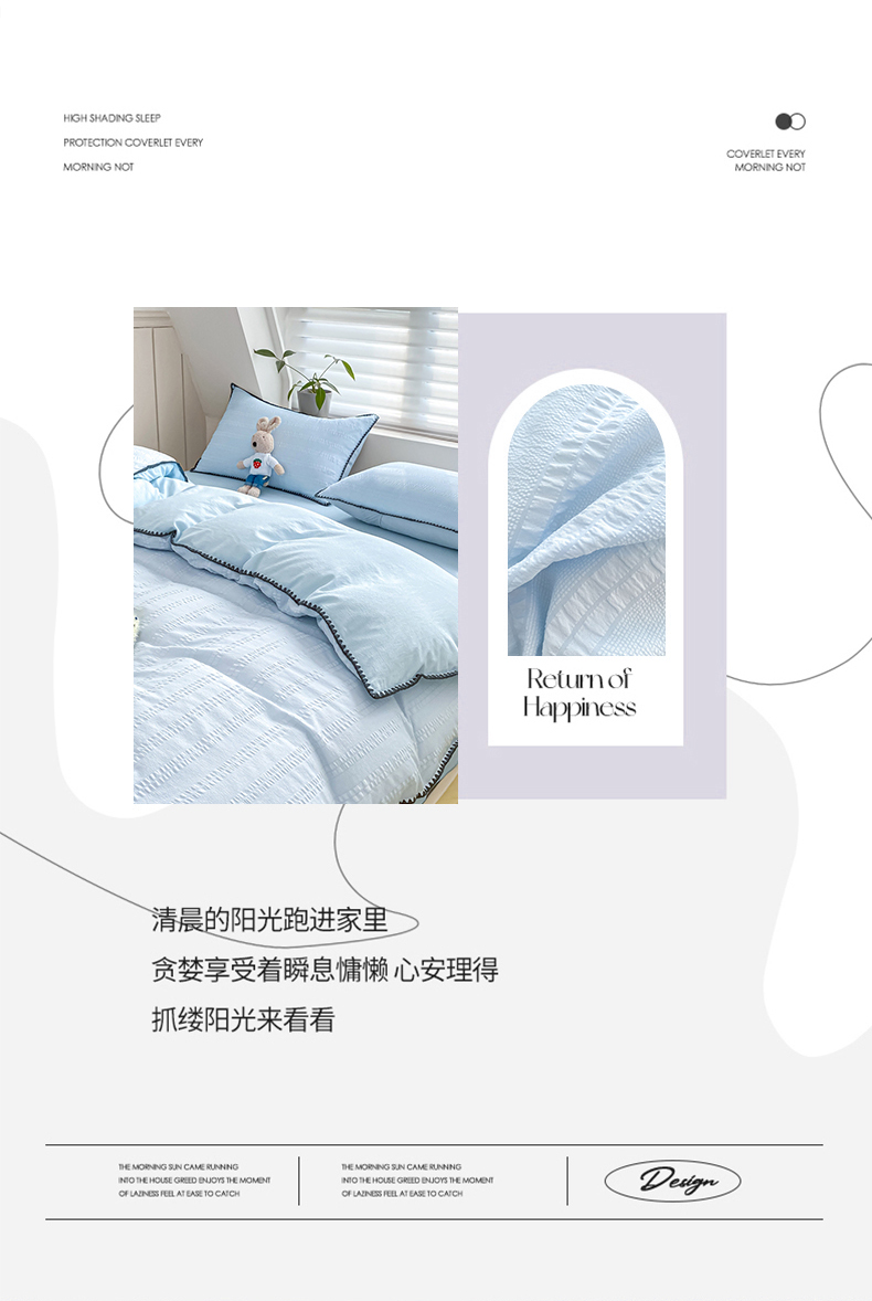 商品名称:羋多 2024新款贝壳边雨泡泡棉泡泡纱双层纱四件套 天空蓝