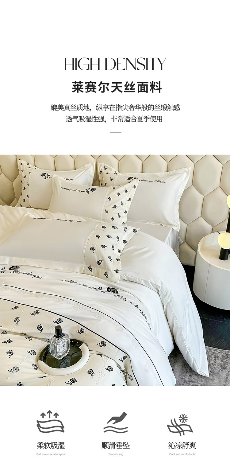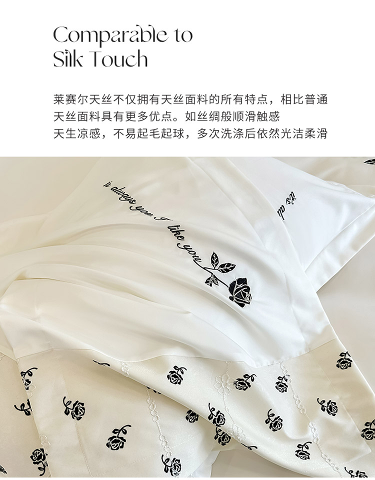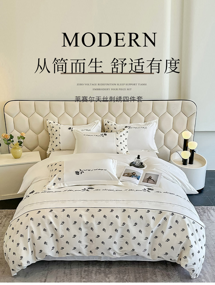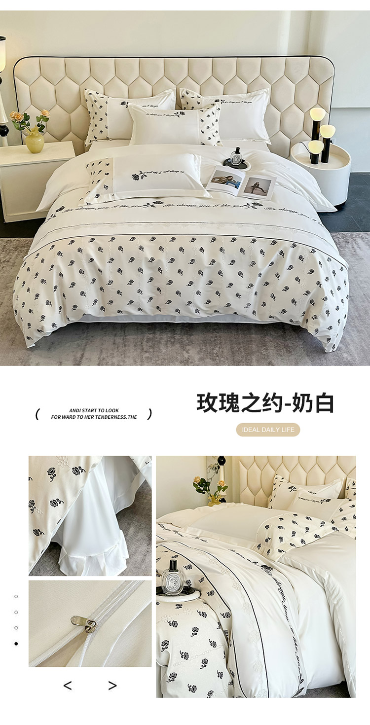 商品名称:梦舒羽 2025新款 莱赛尔天丝四件套-玫瑰之约 玫瑰之约-奶白