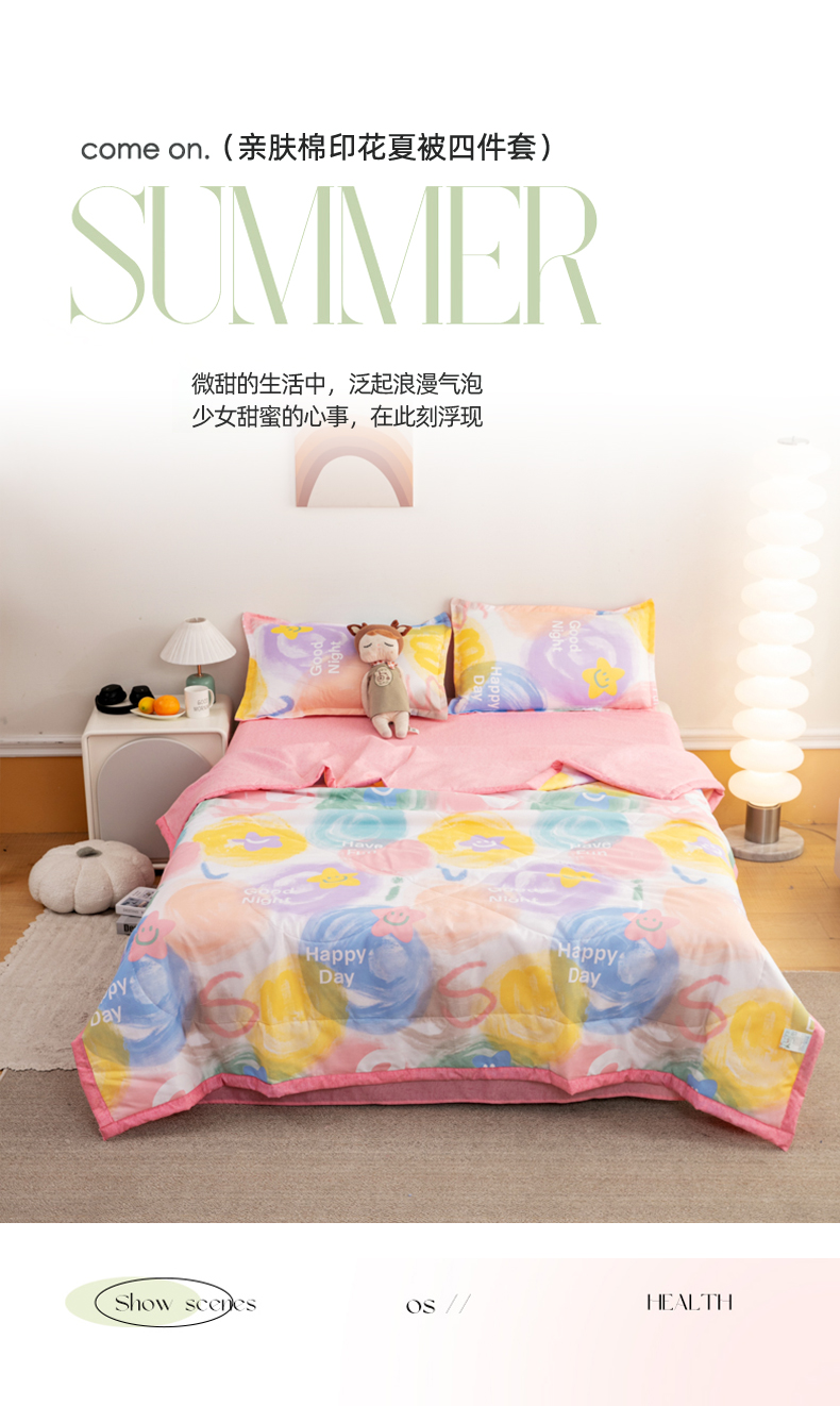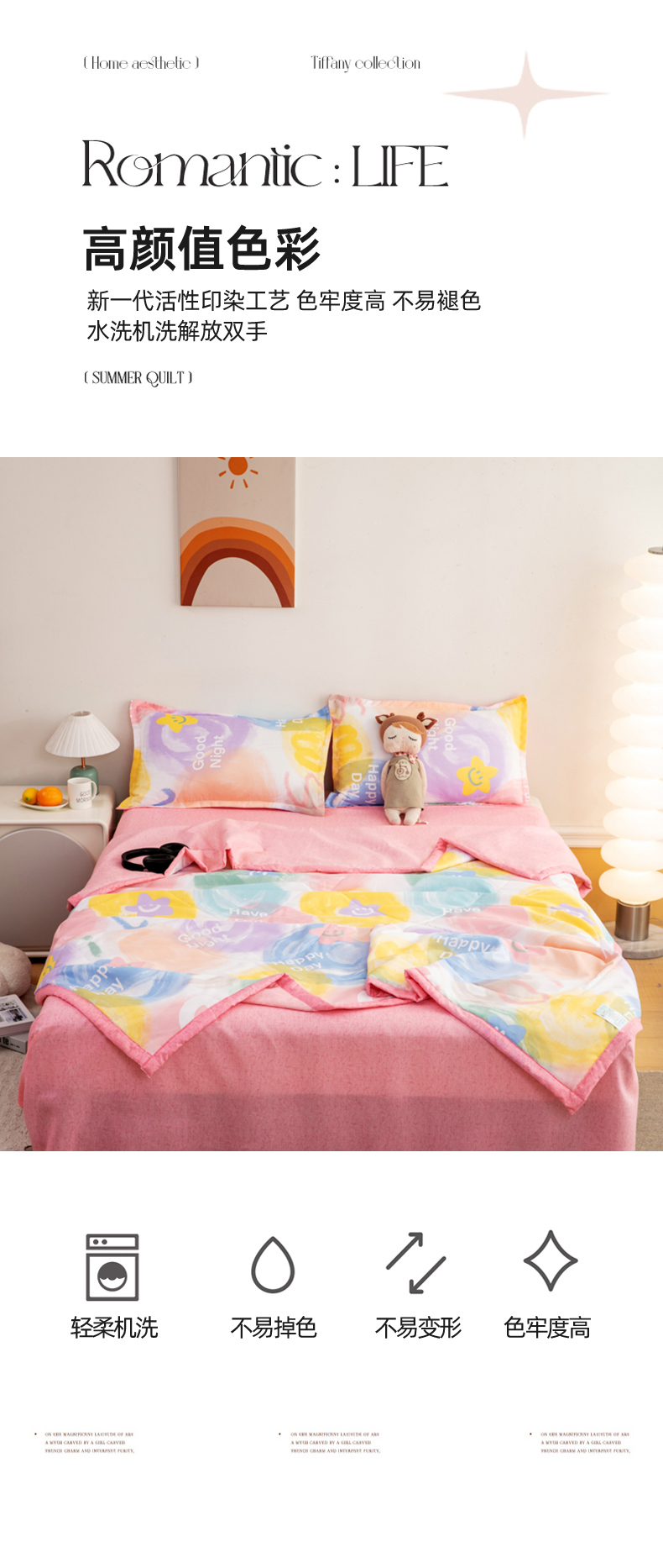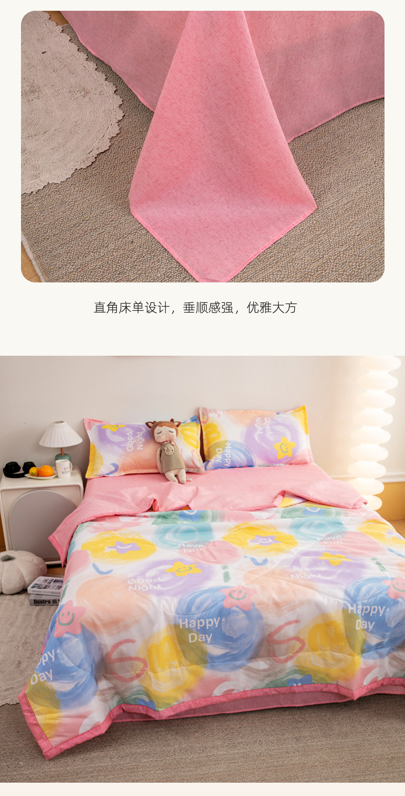 乐居坊 2024新款亲肤舒适印花芦荟棉夏凉被四件套 彩虹微笑