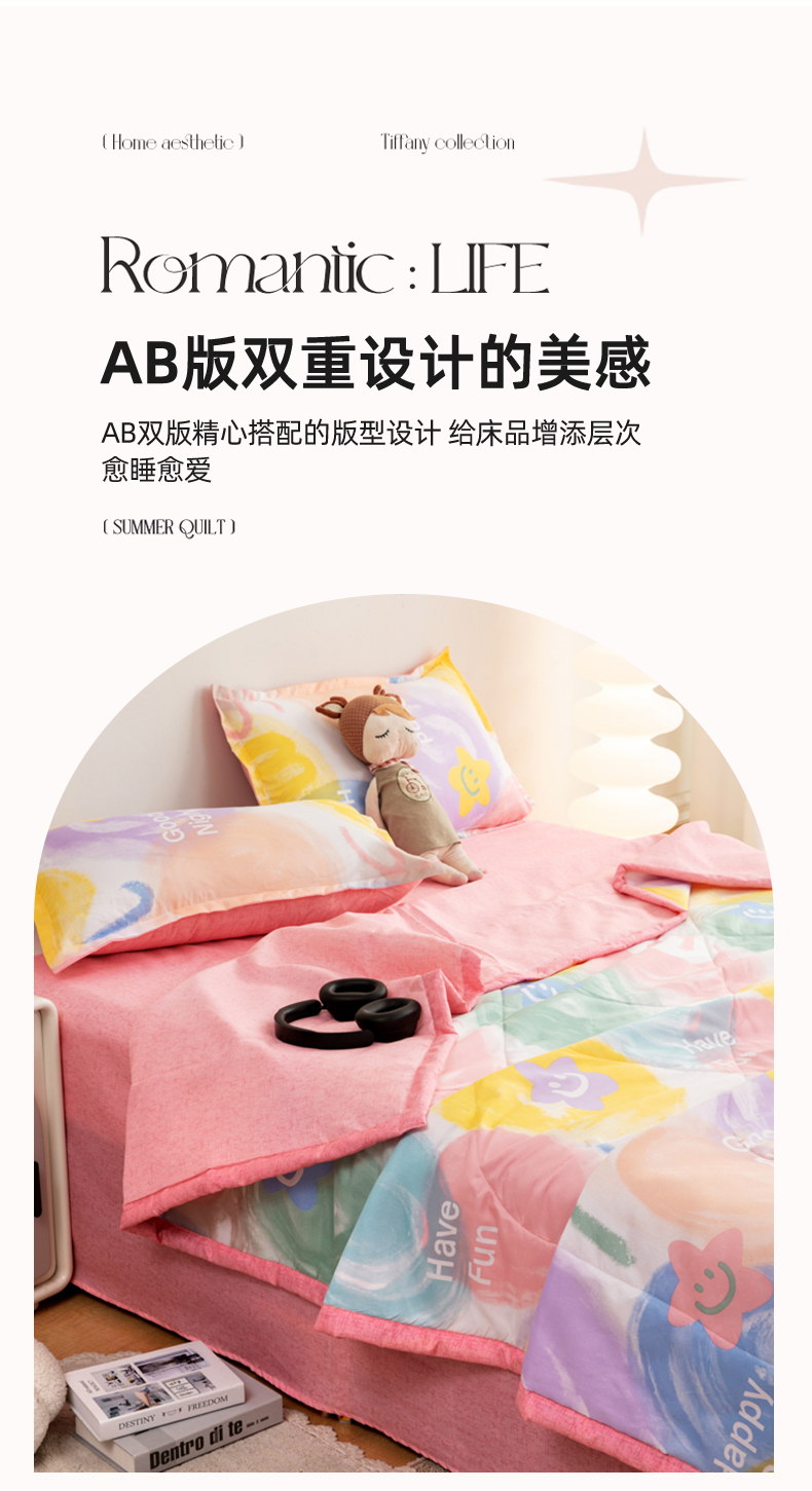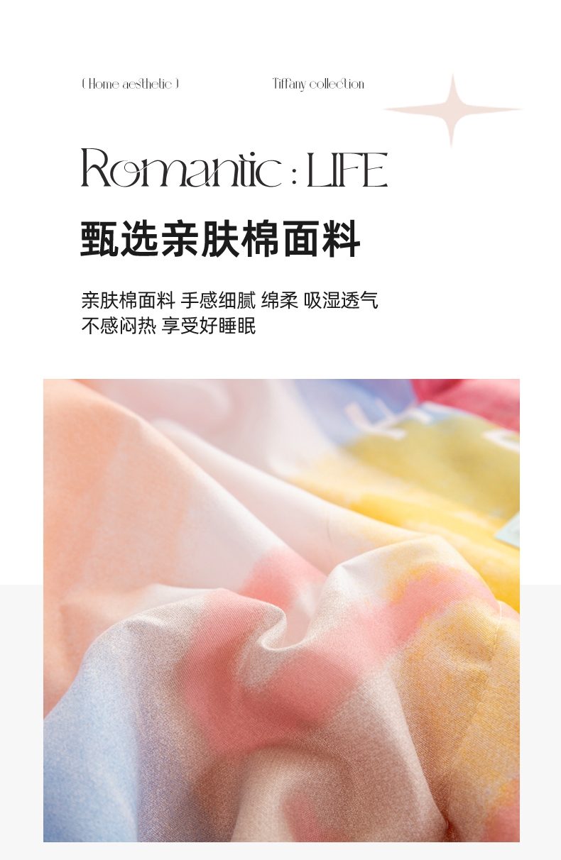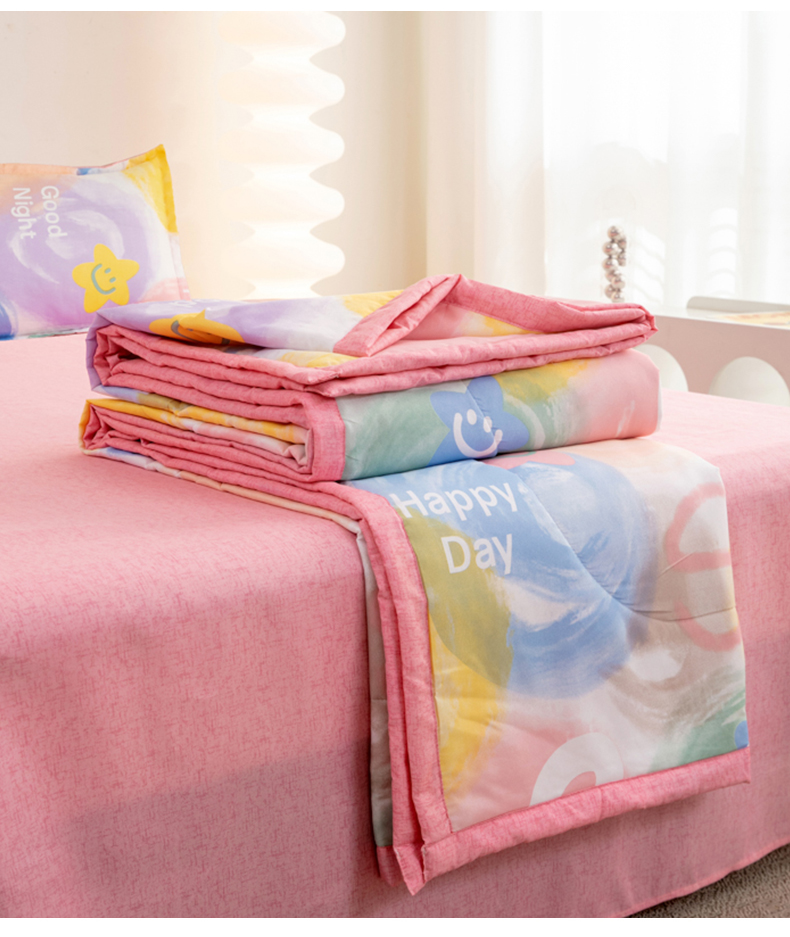 乐居坊 2024新款亲肤舒适印花芦荟棉夏凉被四件套 彩虹微笑