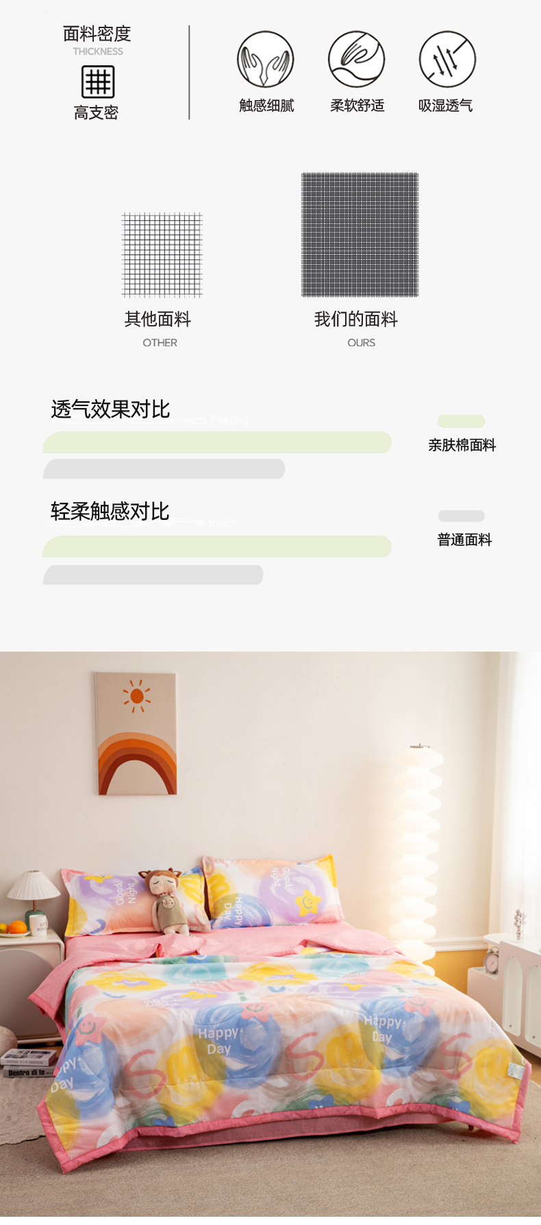 商品名称:乐居坊 2024新款亲肤舒适印花芦荟棉夏凉被四件套 彩虹微笑