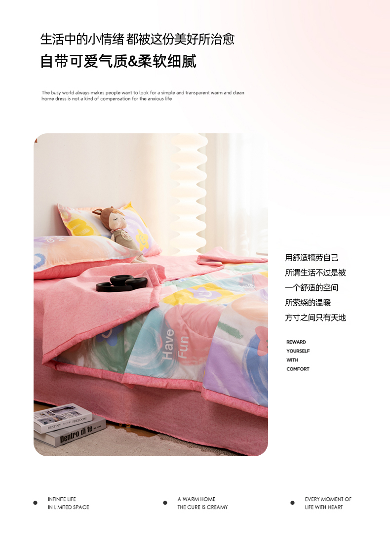 (总)乐居坊 2025新款亲肤舒适A类水洗云朵棉四件套-场景二,佛系少女,国风少女,可爱小新,奇趣小新,少女梦,盛夏光年,糖果派对,小怪兽,小煤球-粉