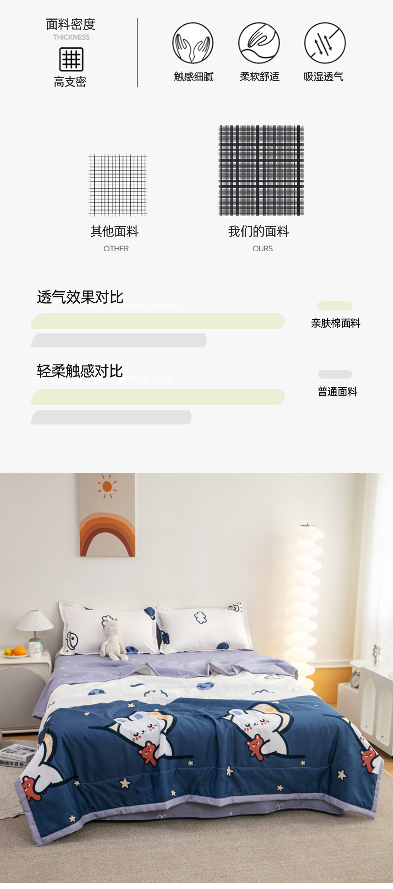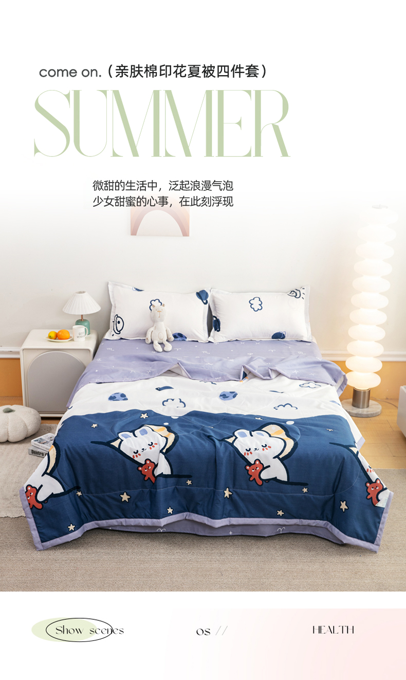 商品名称:乐居坊 2024新款亲肤舒适印花芦荟棉夏凉被四件套 梦想兔