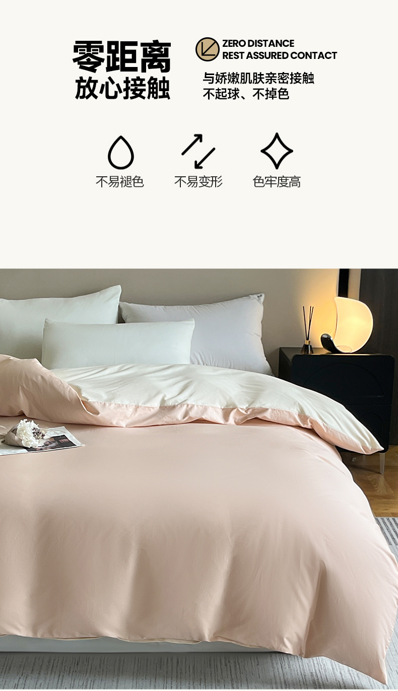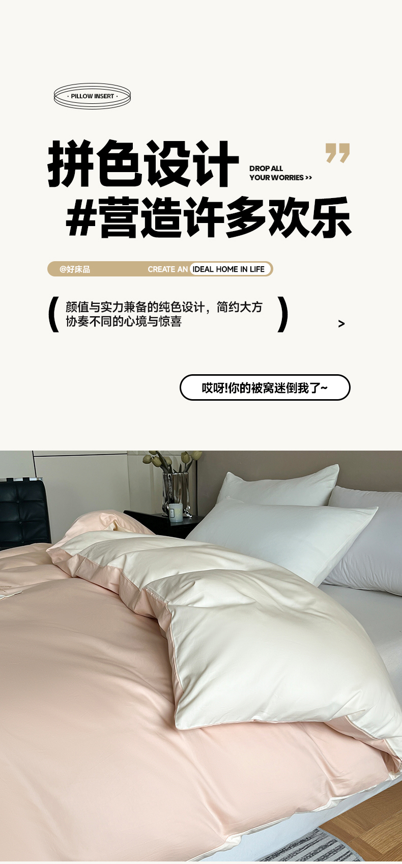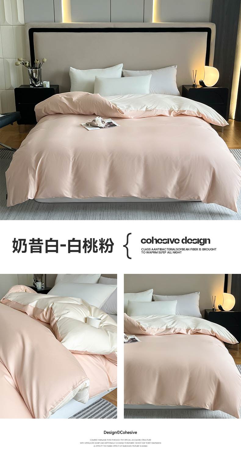 商品名称:澳梵2024新款60s全棉纯色单品被套 奶昔白-白桃粉