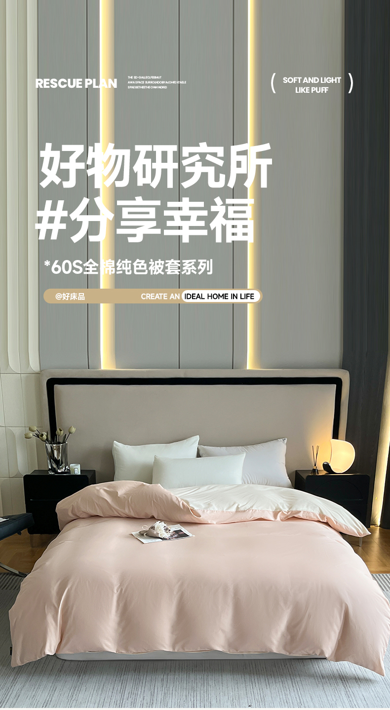 澳梵2024新款60s全棉纯色单品被套 奶昔白-白桃粉