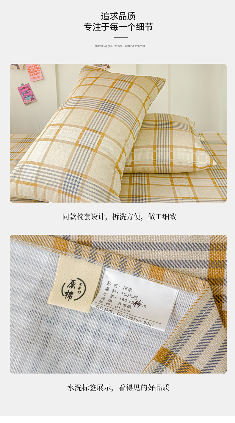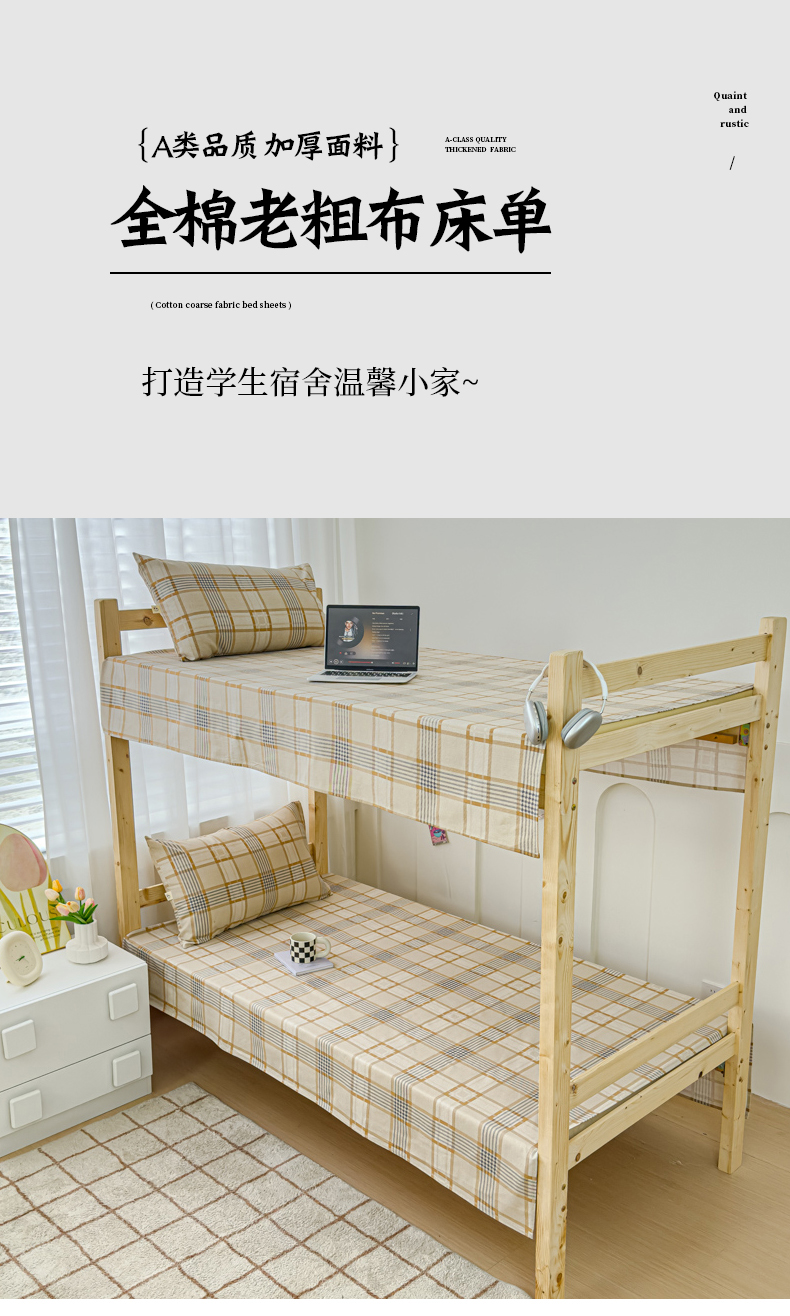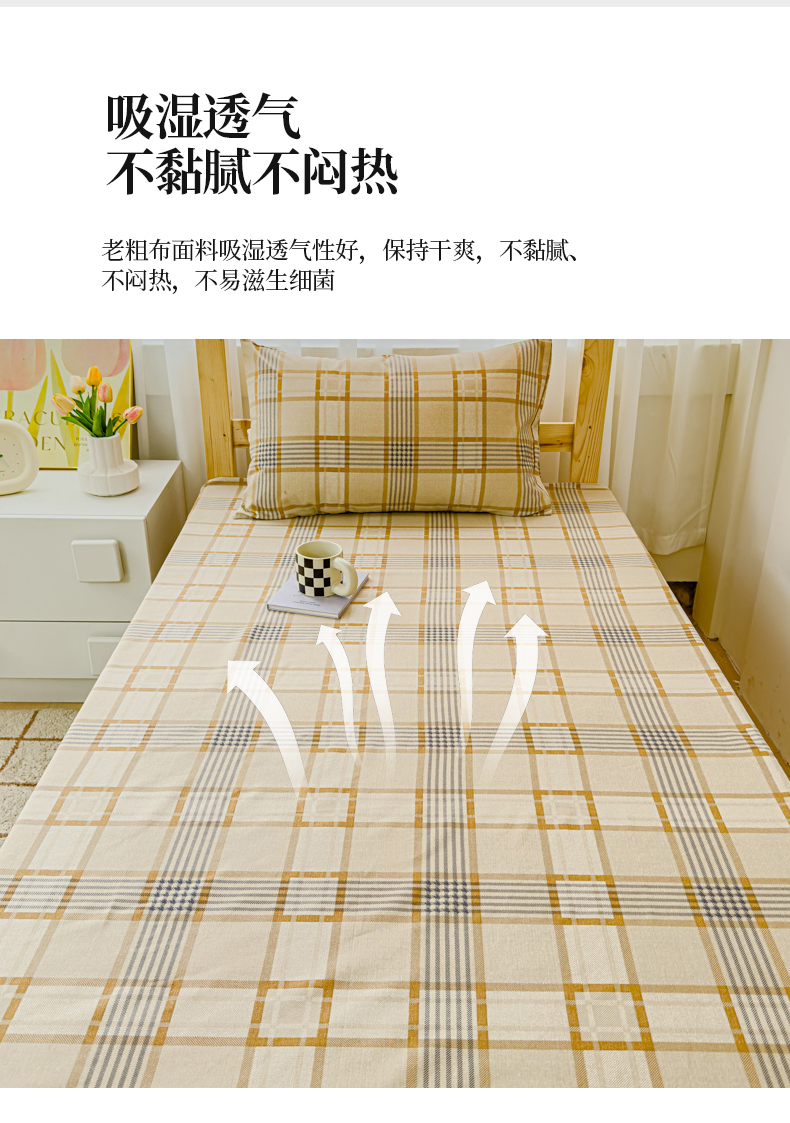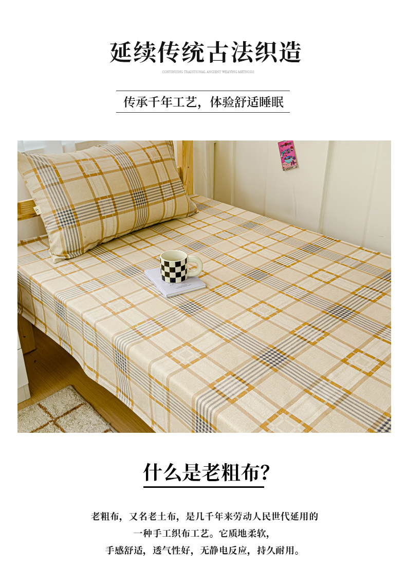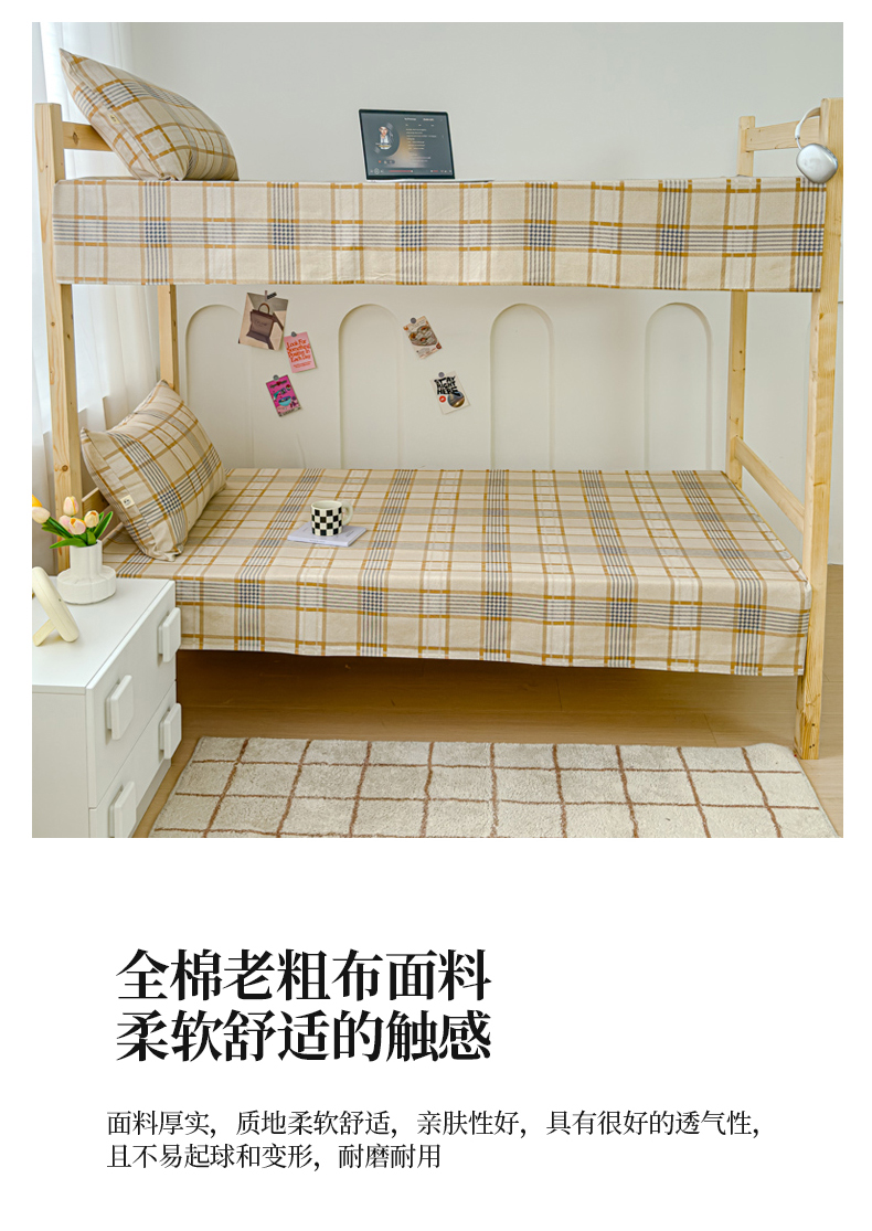 • 91家纺网 家纺一手货源 找家纺 金丝鸟 2024新款学生款A类全棉老粗布床单 咖小格