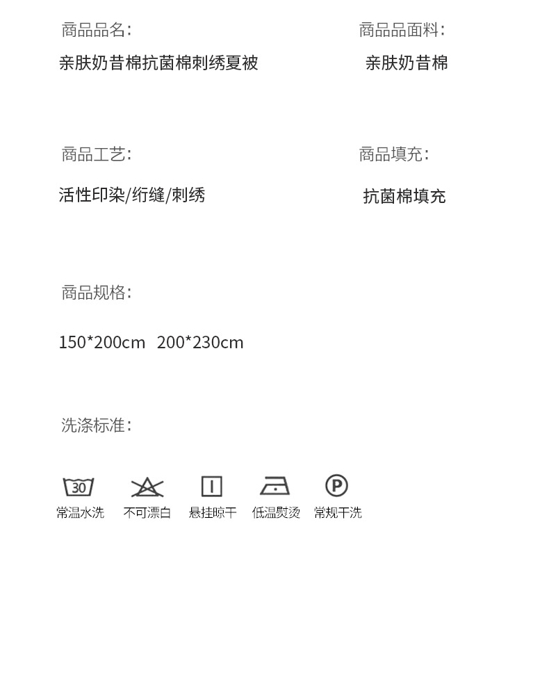 商品名称:(总)尊康家纺(原磊科) 2024新款亲肤奶昔棉抗菌棉填充刺绣夏被