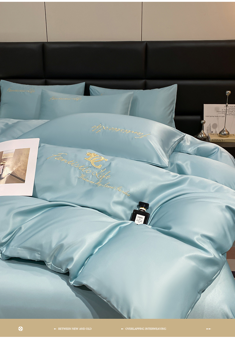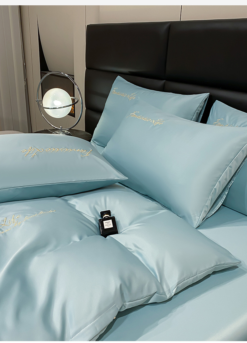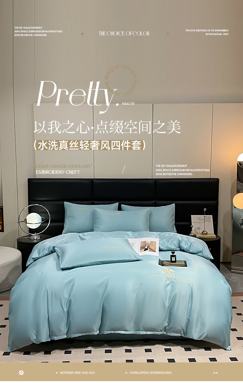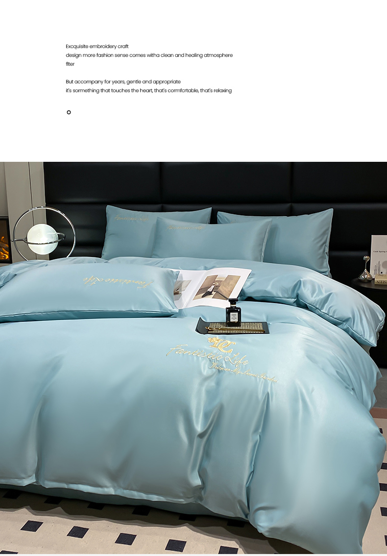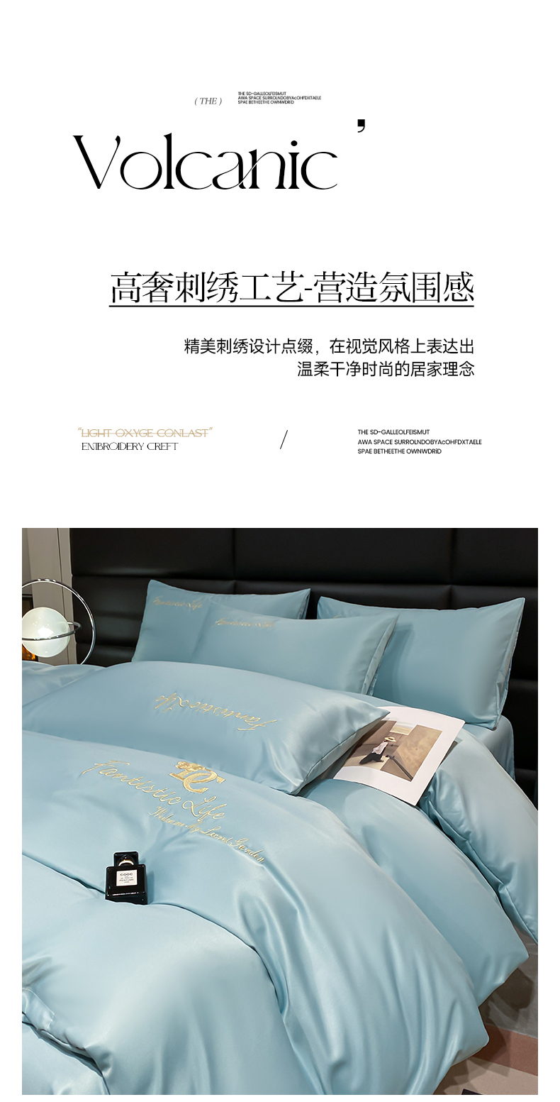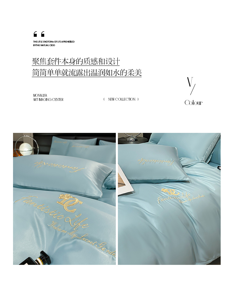 澳梵 2024新款水洗真丝刺绣四件套 米兰生活-柔情蓝