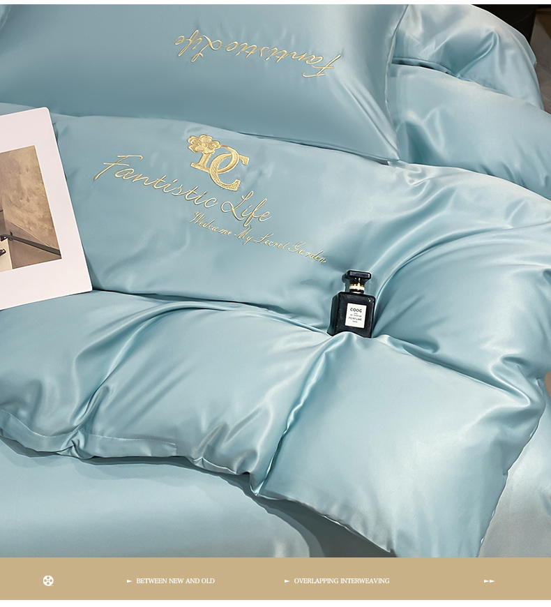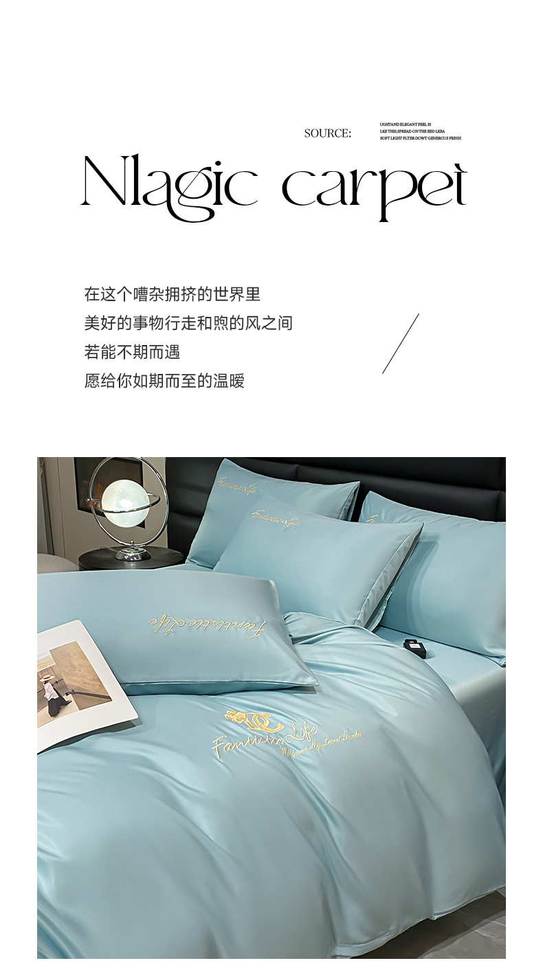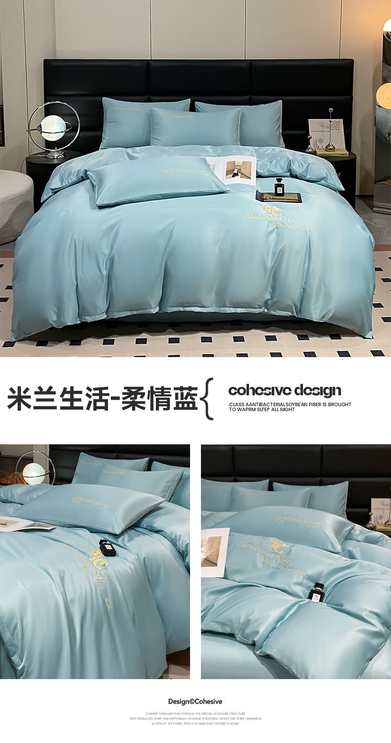 商品名称:澳梵 2024新款水洗真丝刺绣四件套 米兰生活-柔情蓝