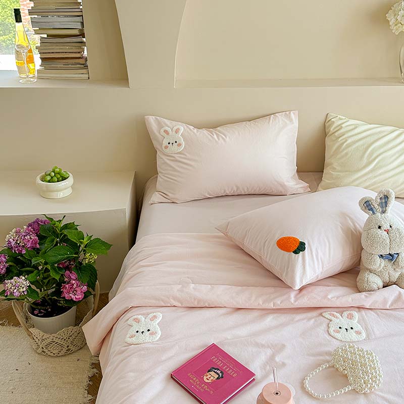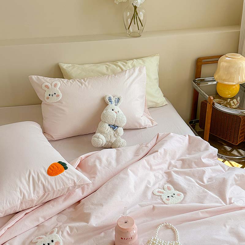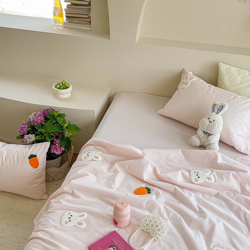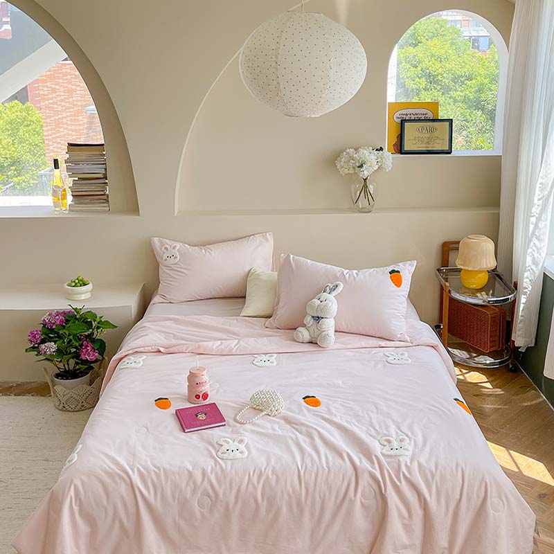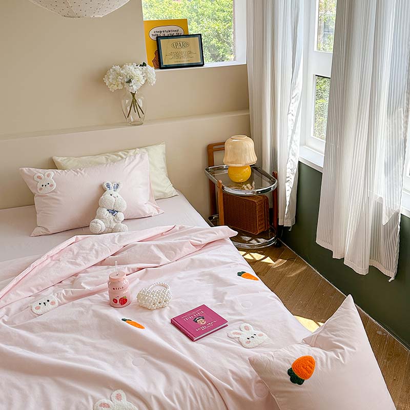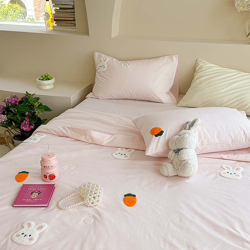 柚子 2024新款全棉水洗新疆棉夏被四件套 小白兔