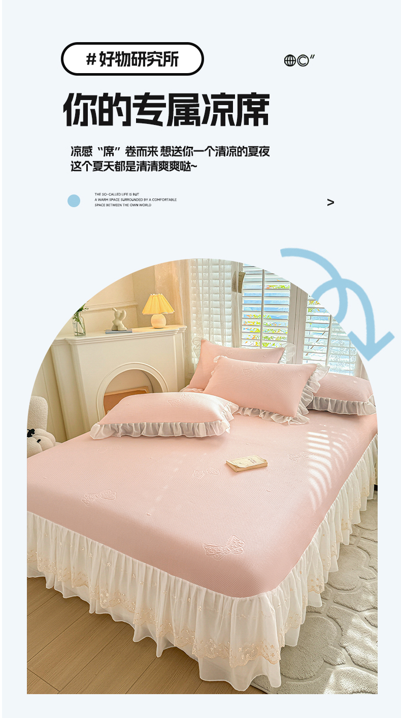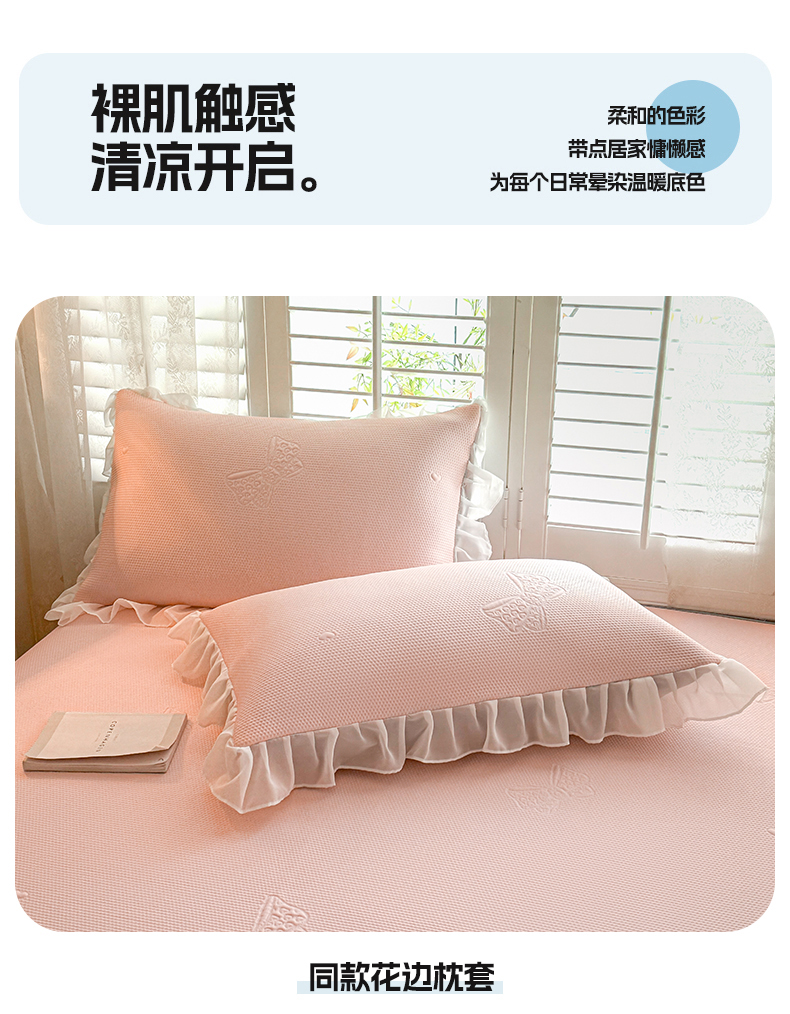 商品名称:启程家纺 2024新款A类凉豆豆床裙款凉席三件套 蝴蝶结-粉