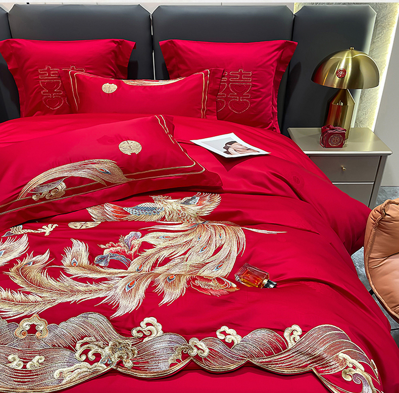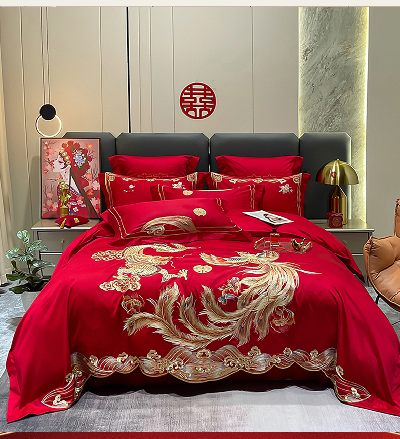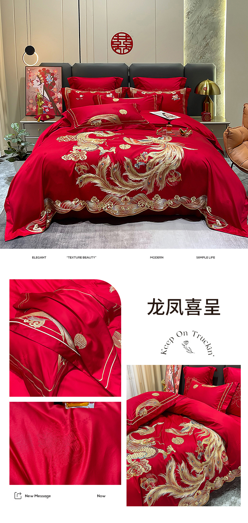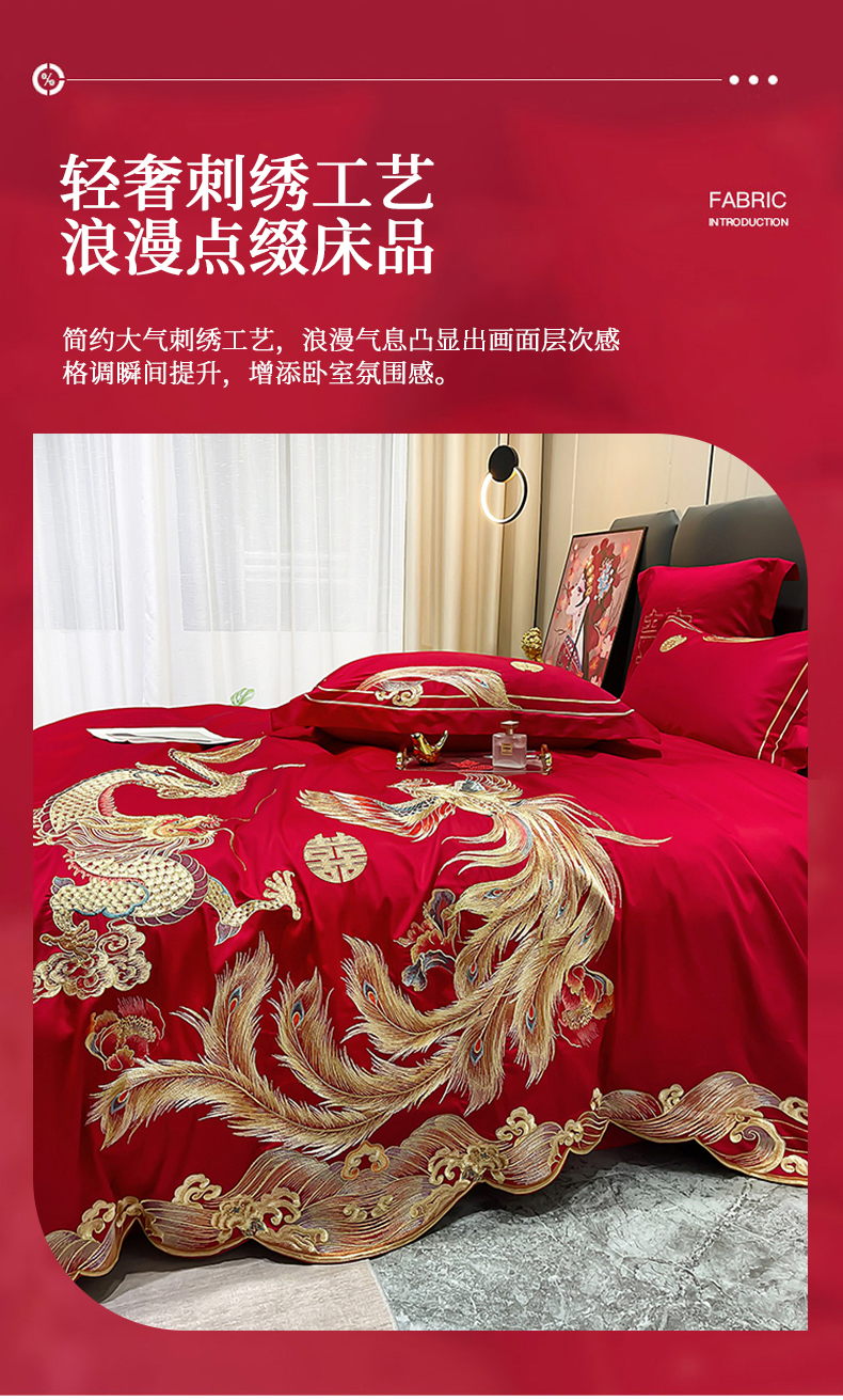 卓缦家纺 2024新款全棉刺绣提花四件套 龙凤喜呈