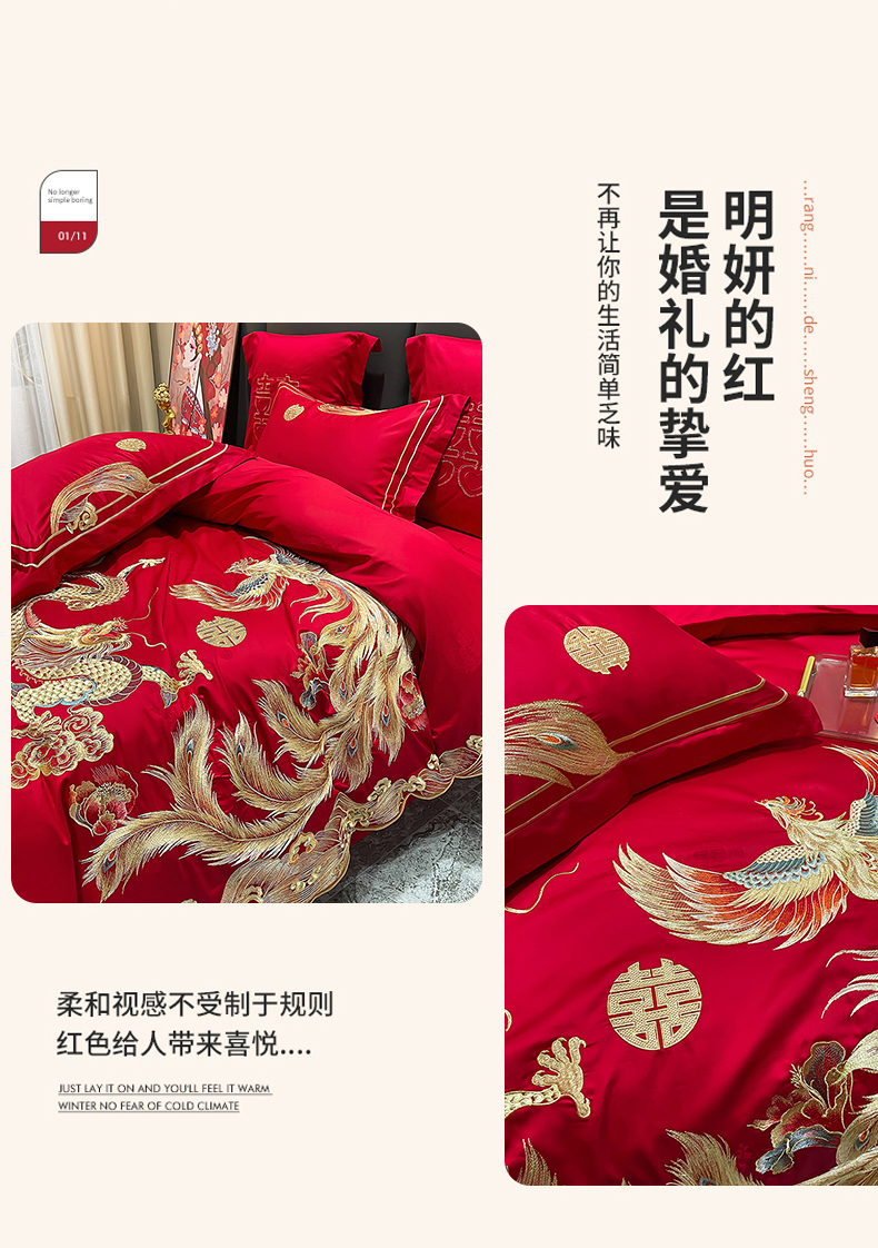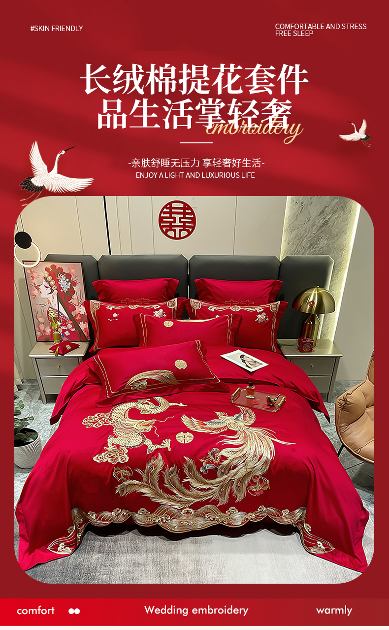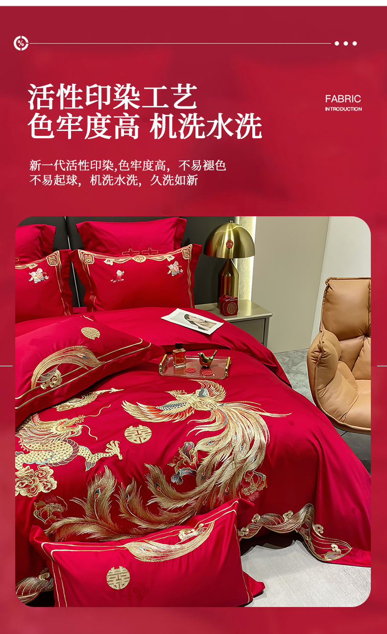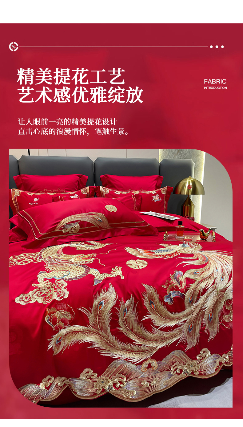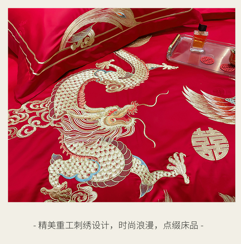 商品名称:卓缦家纺 2024新款全棉刺绣提花四件套 龙凤喜呈