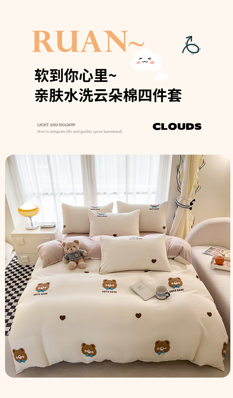 当前位置: 91家纺网 > 商品网购 > 床品套件 > 四件套 > 其它四件套 > 宏源 2024新款超柔云朵棉四件套 熊先生