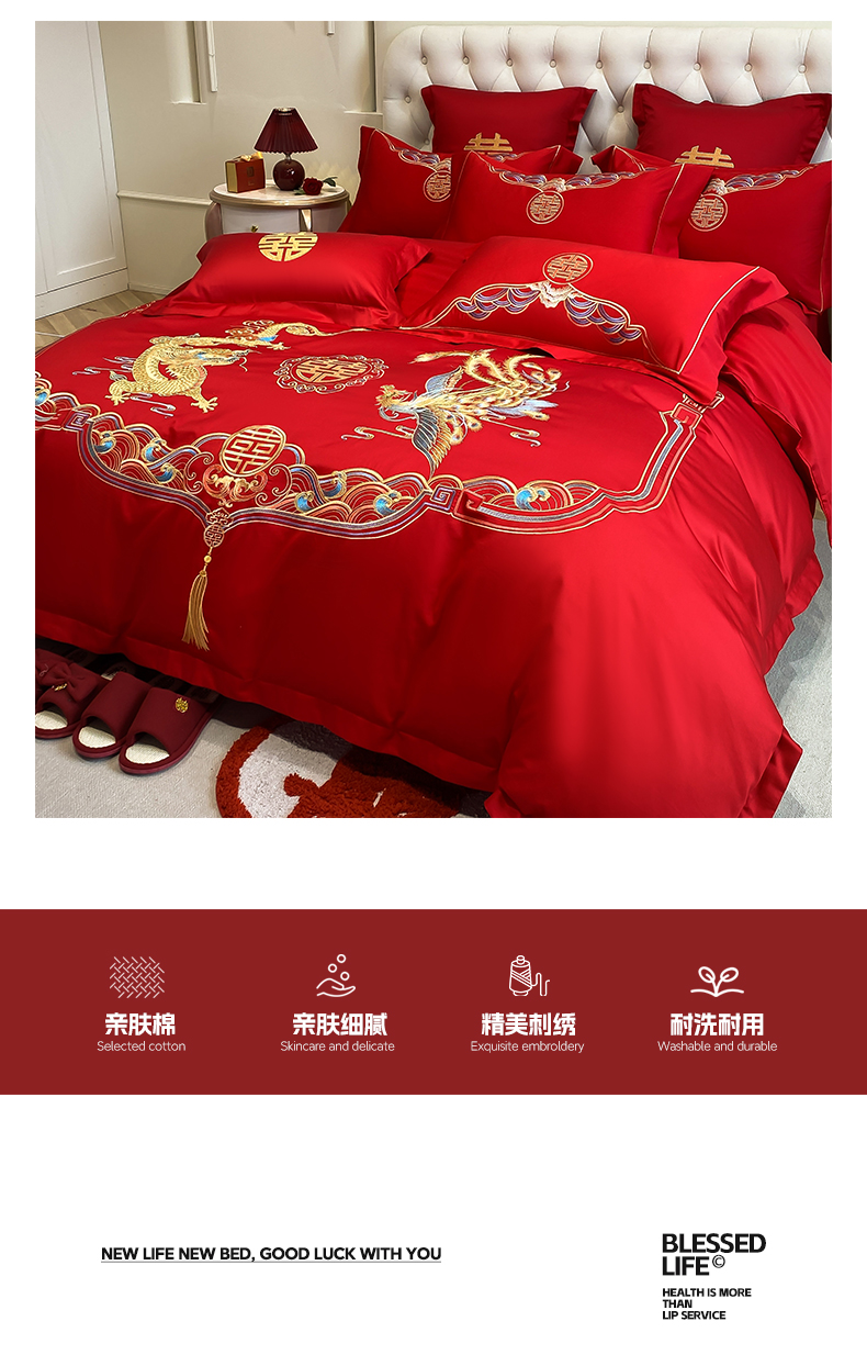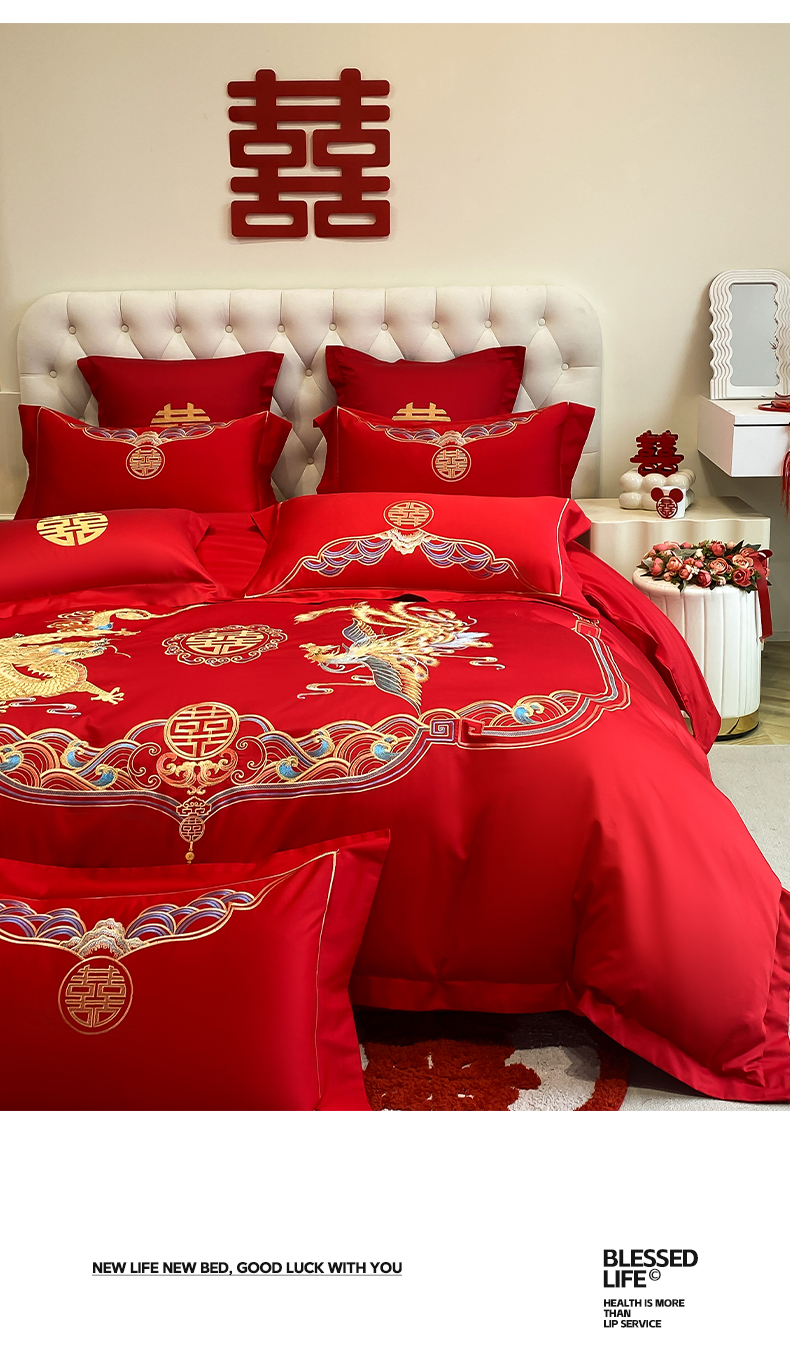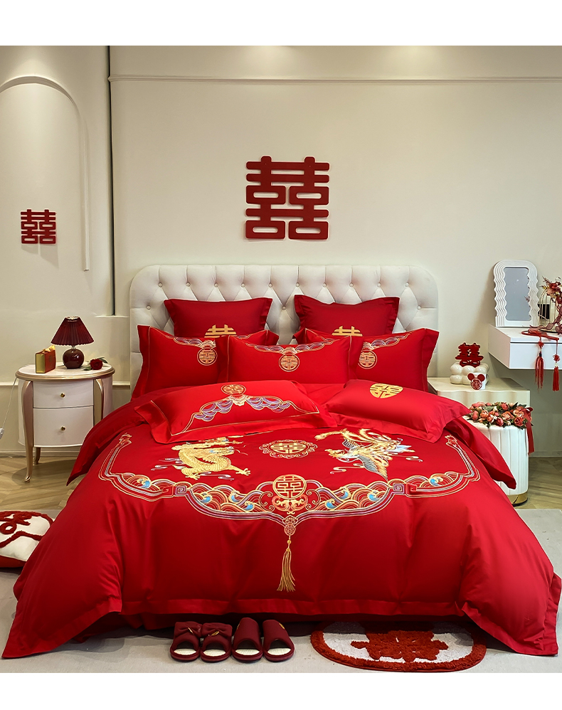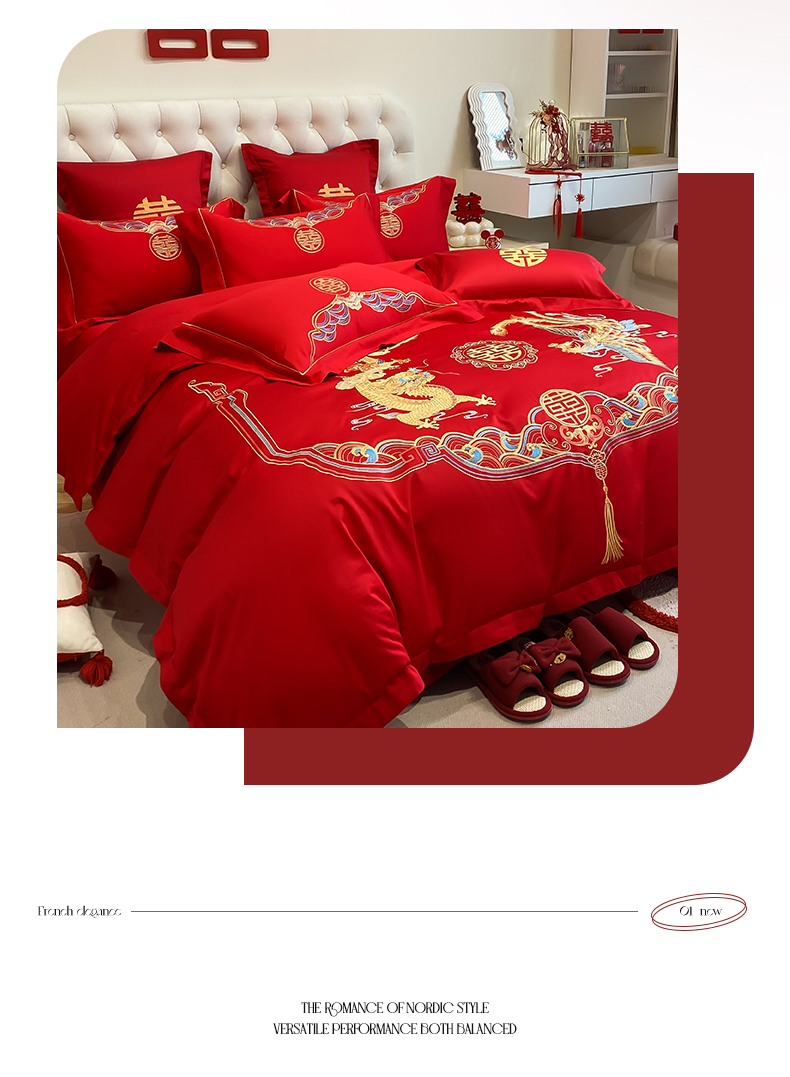 欧乐蒂 2025新款亲肤棉婚庆刺绣四件套-终版 龙凤瑞彩