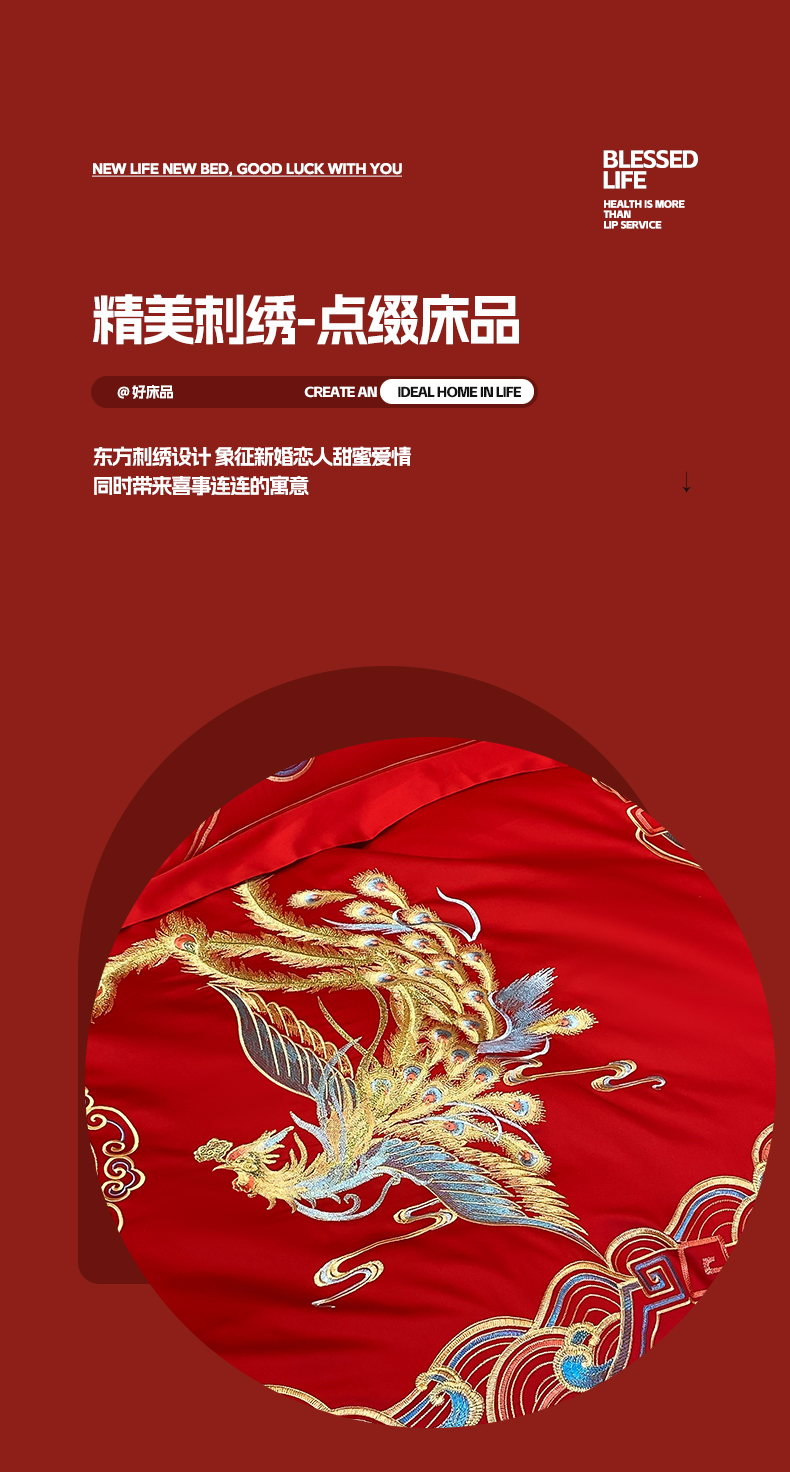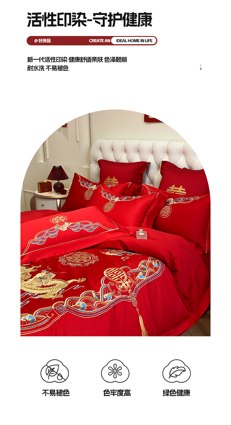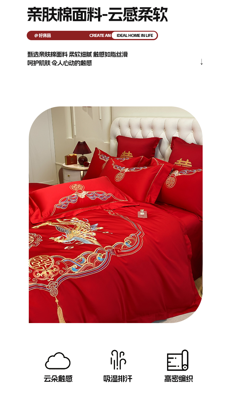商品名称:欧乐蒂 2025新款亲肤棉婚庆刺绣四件套-终版 龙凤瑞彩