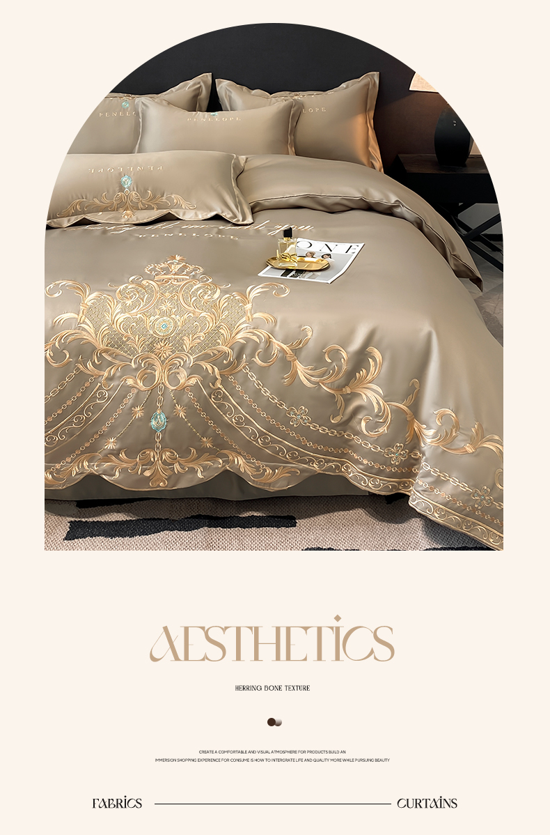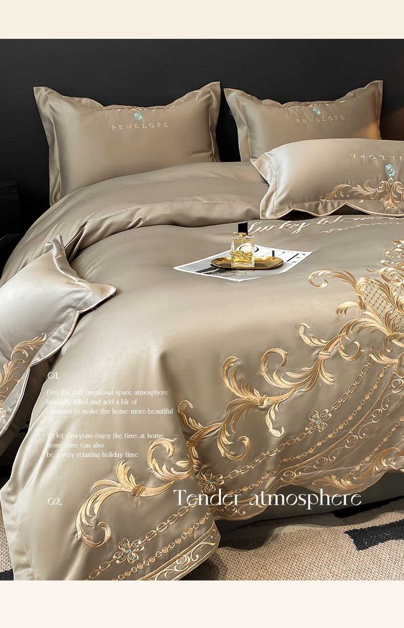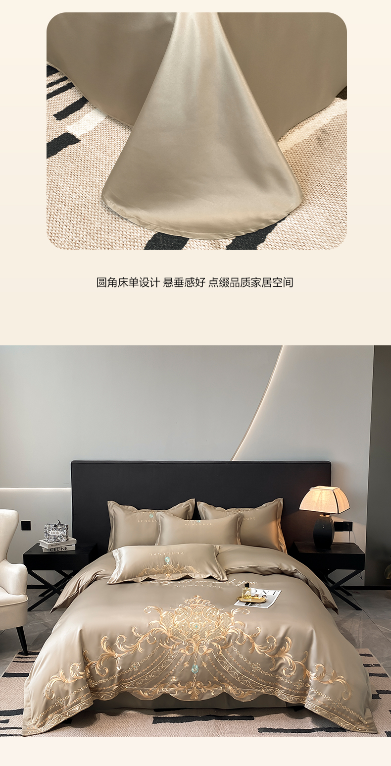 (总)欧乐蒂 2025新款欧式水洗贡缎全棉刺绣四件套-欧雅终版,宾利蓝,玉色,白色,粉色,豆沙,酒红,香槟,高级灰