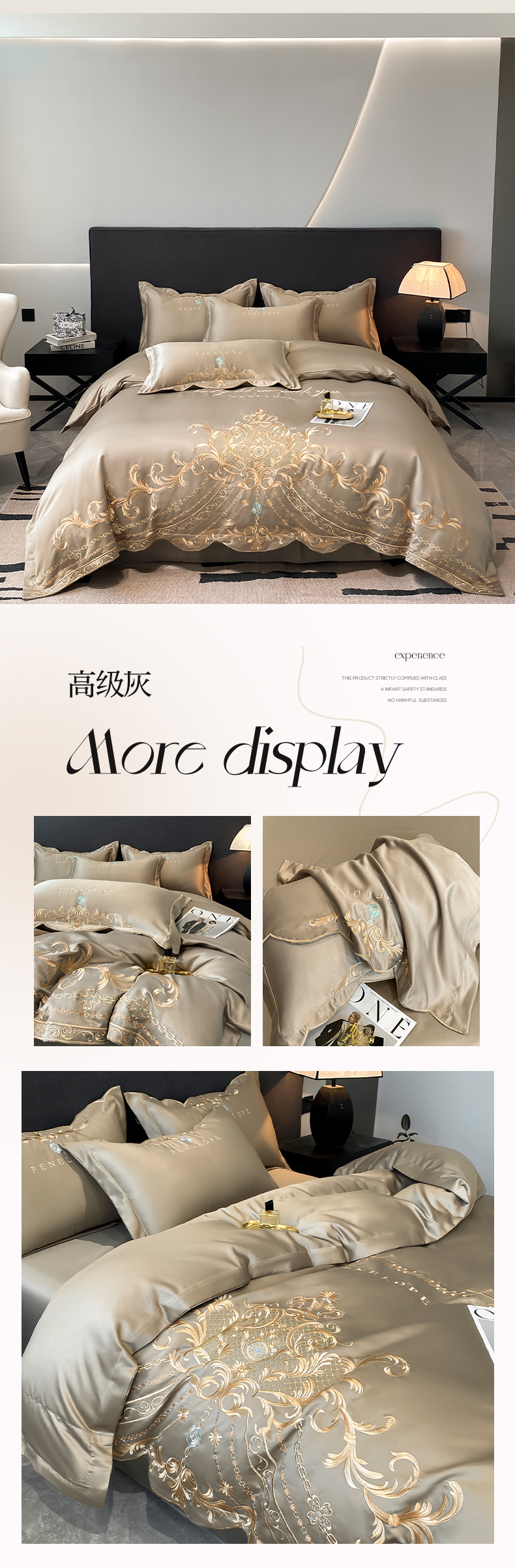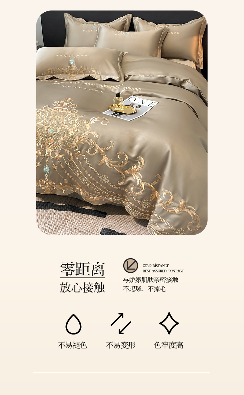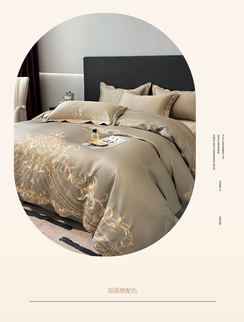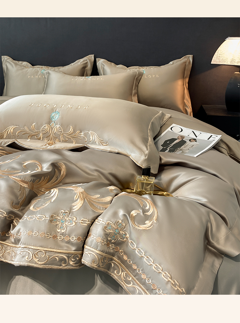 商品名称:欧乐蒂 2025新款欧式水洗贡缎全棉刺绣四件套-欧雅终版 高级灰