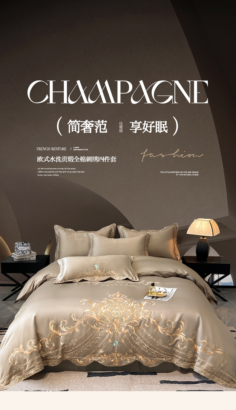 (总)欧乐蒂 2025新款高支高密水洗贡缎全棉四件套-简爱,简爱宾利兰,简爱典雅白,简爱豆沙,简爱梵星兰,简爱高级灰,简爱香槟金