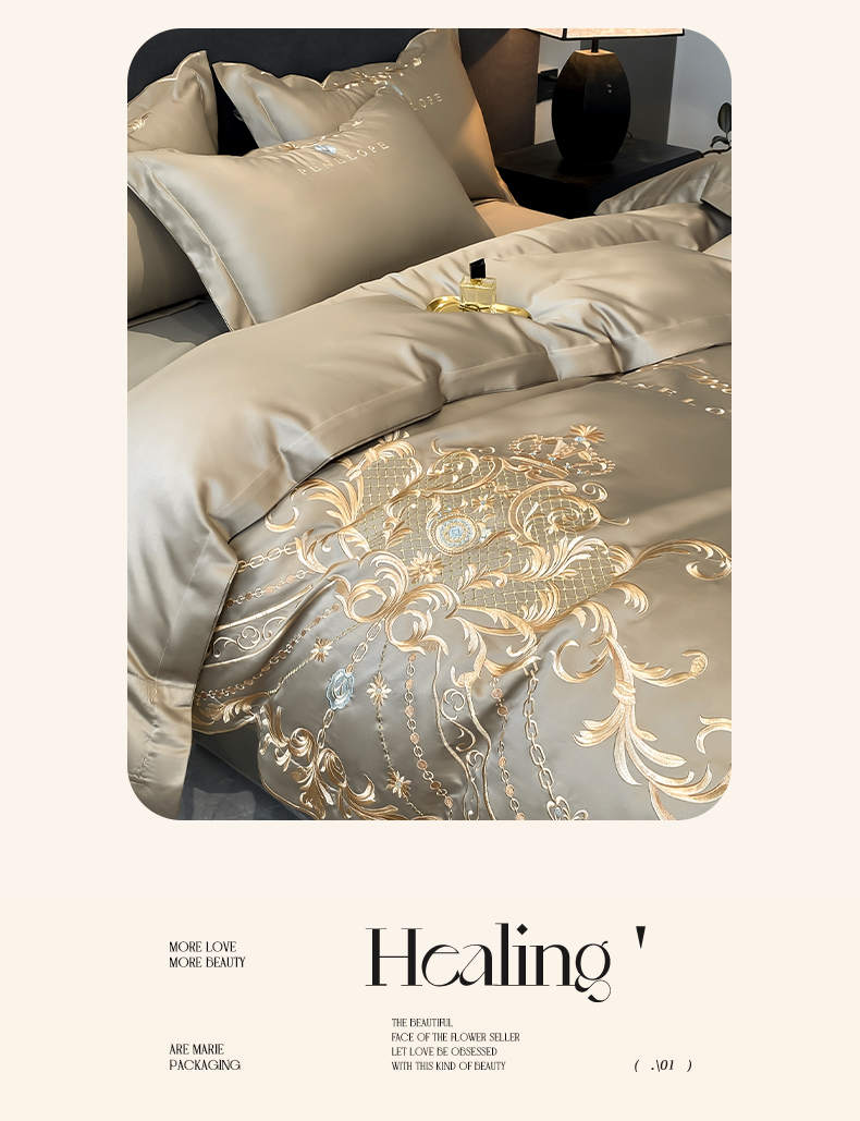 欧乐蒂 2025新款欧式水洗贡缎全棉刺绣四件套-欧雅终版 高级灰