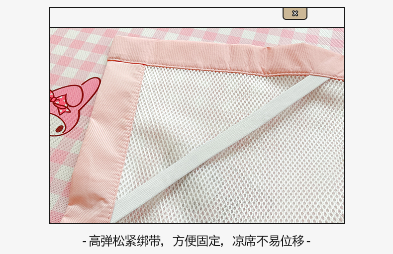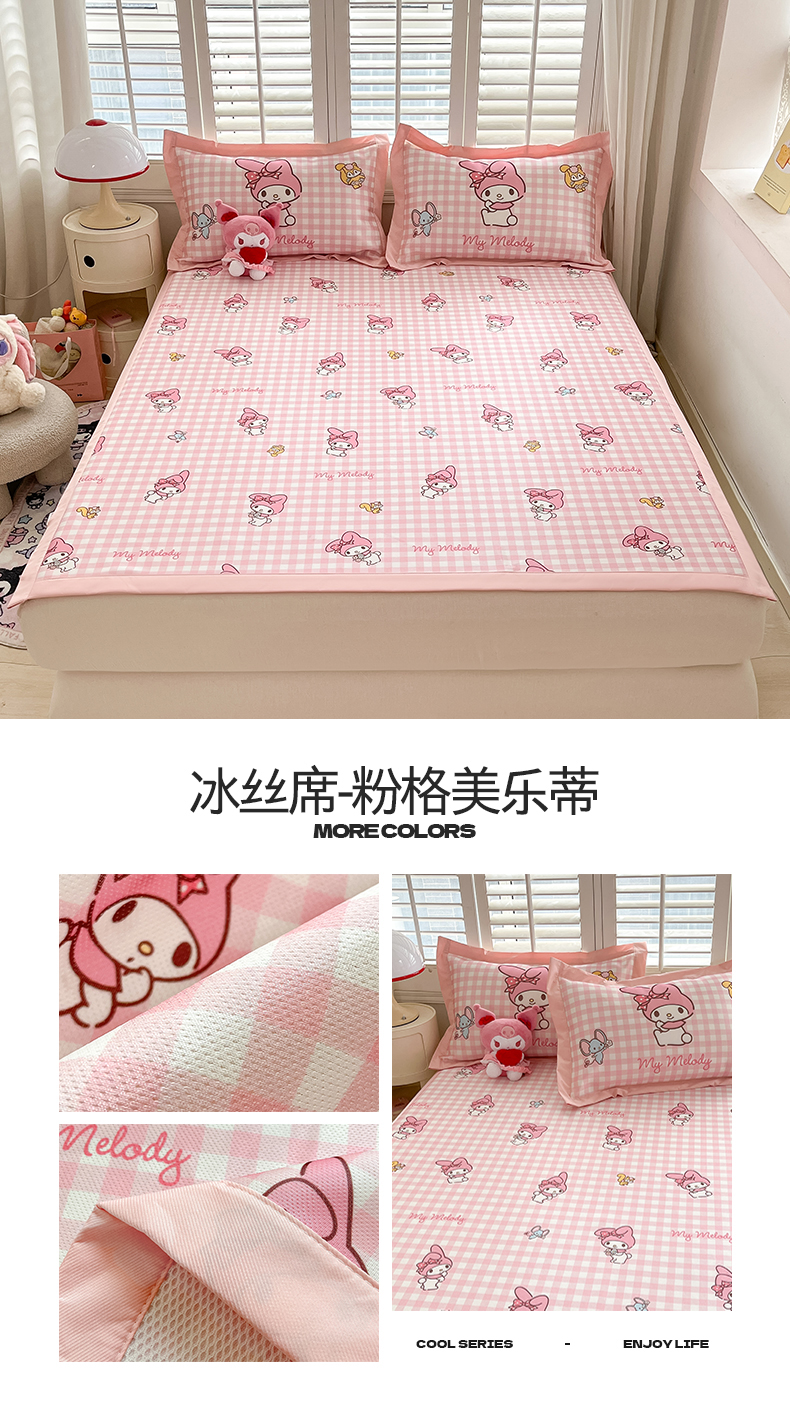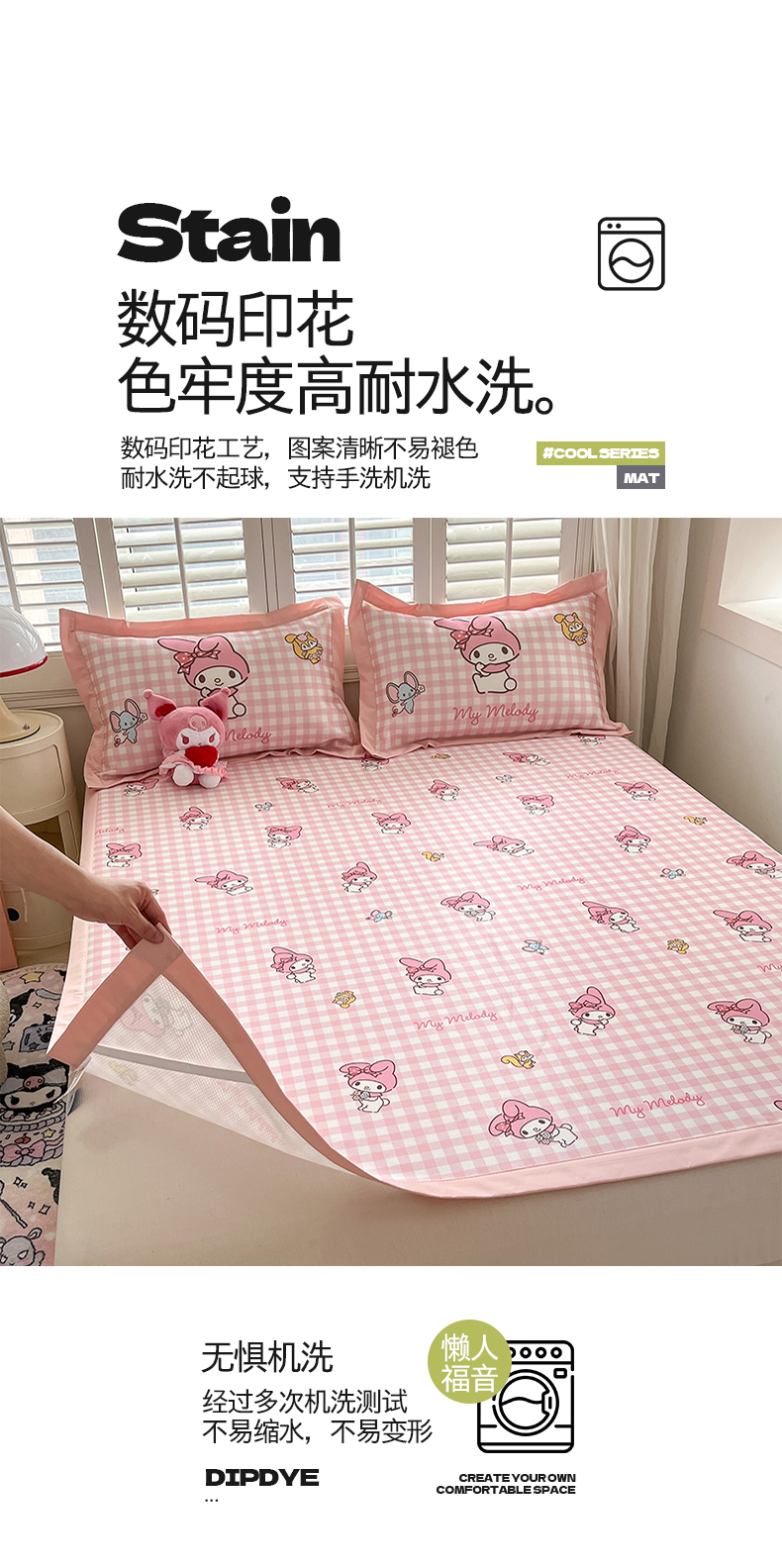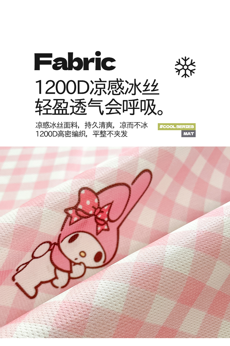 商品名称:金爱家 2024新款A类三丽鸥授权数码印花中分子1200D凉感冰丝宽边凉感软席 冰丝席-粉格美乐蒂