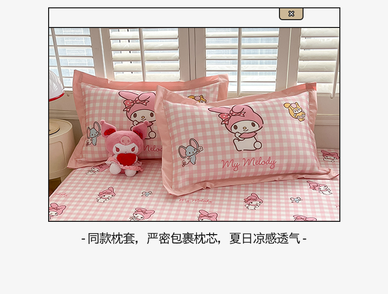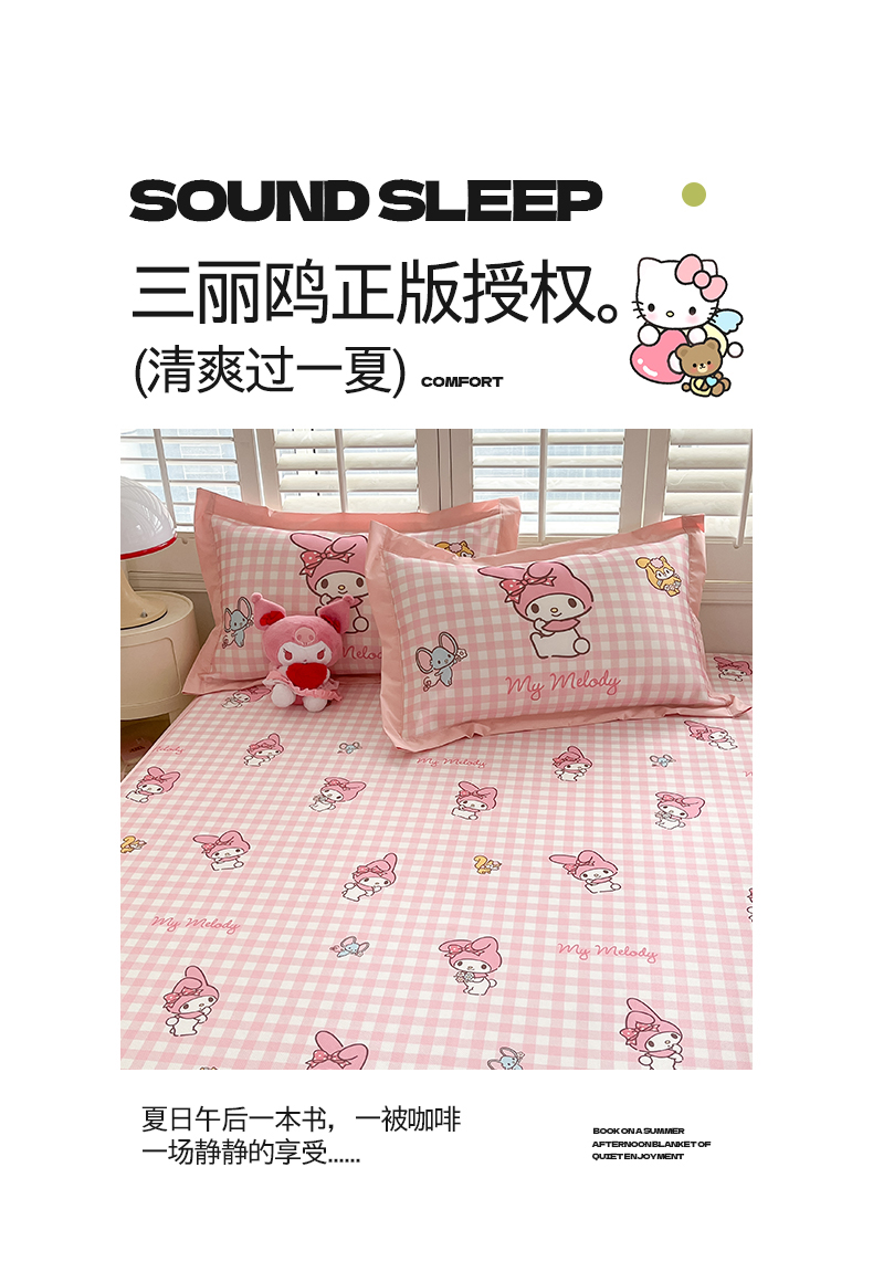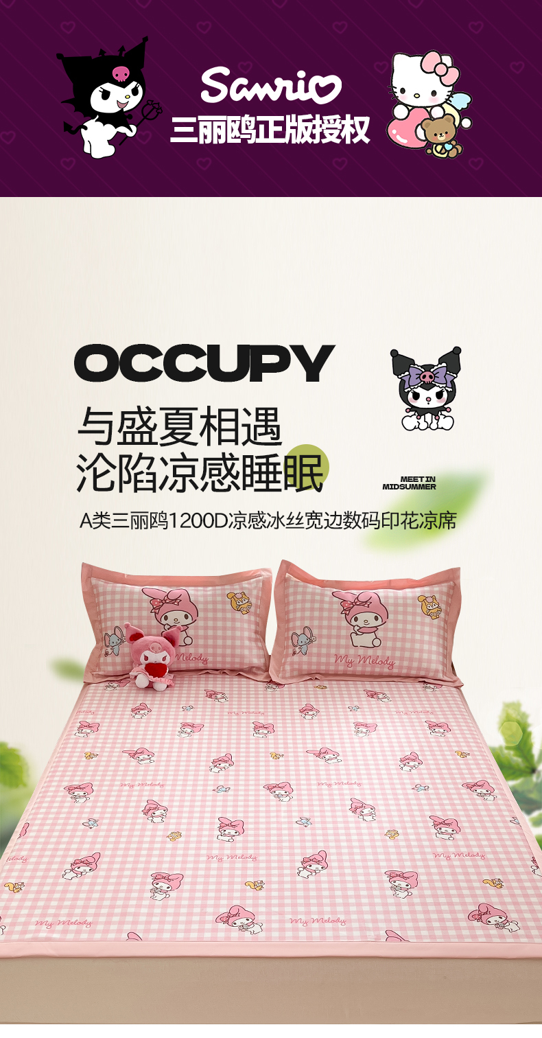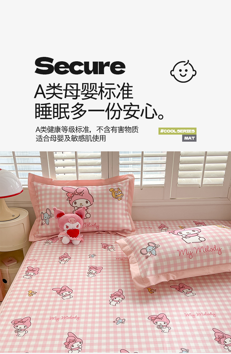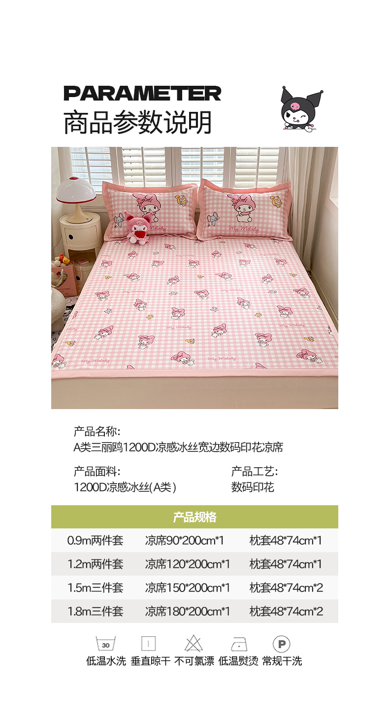 商品名称:金爱家 2024新款A类三丽鸥授权数码印花中分子1200D凉感冰丝宽边凉感软席 冰丝席-粉格美乐蒂
