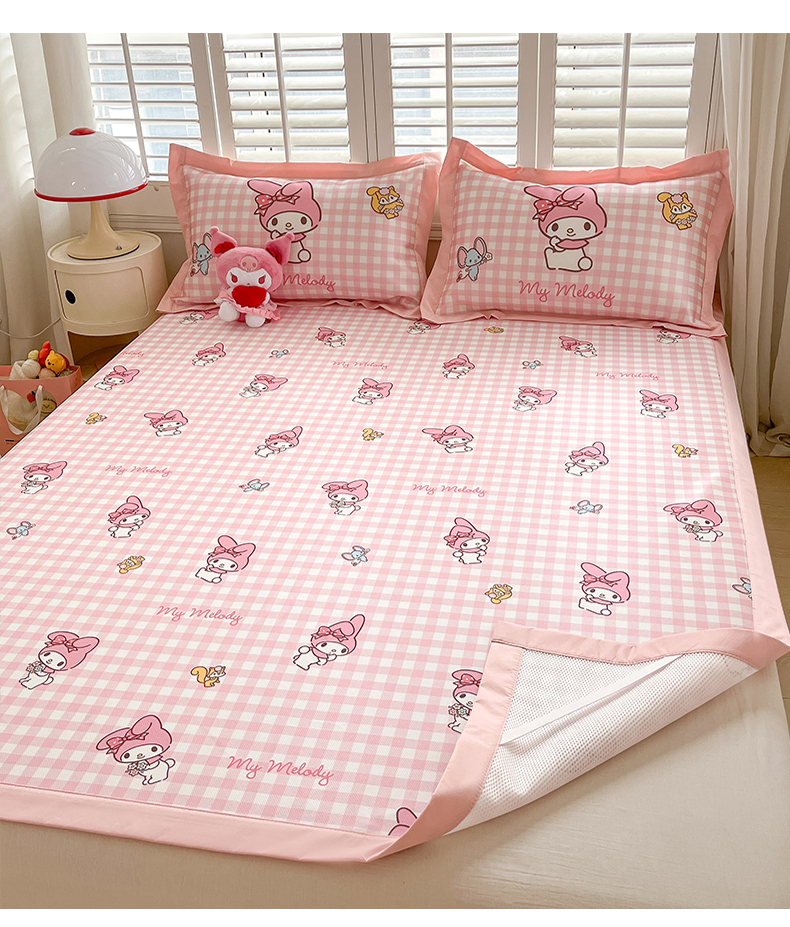 金爱家 2024新款A类三丽鸥授权数码印花中分子1200D凉感冰丝宽边凉感软席 冰丝席-粉格美乐蒂