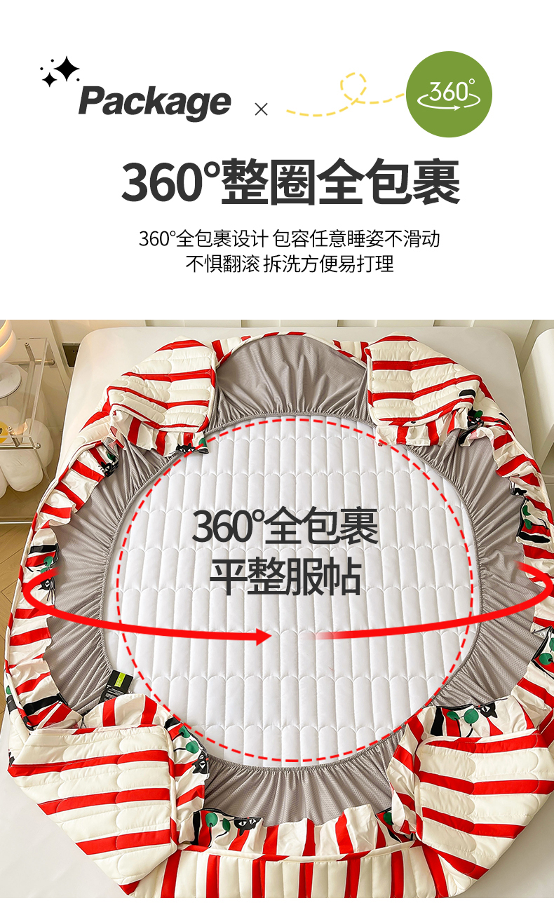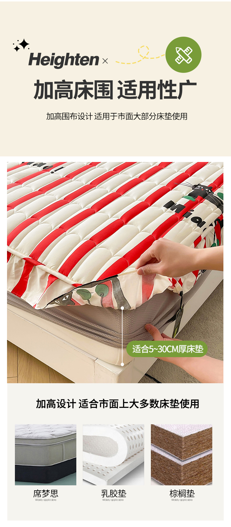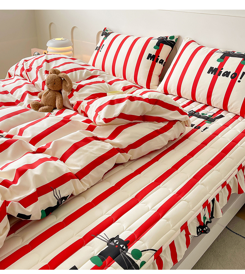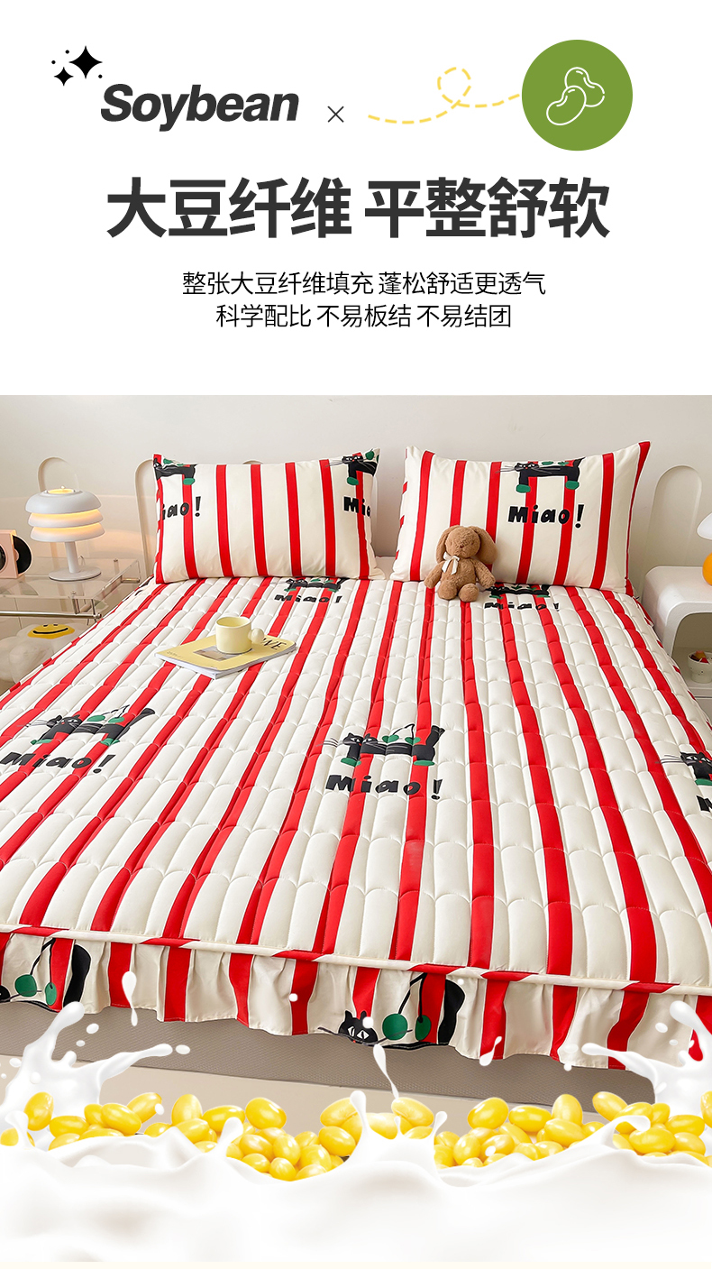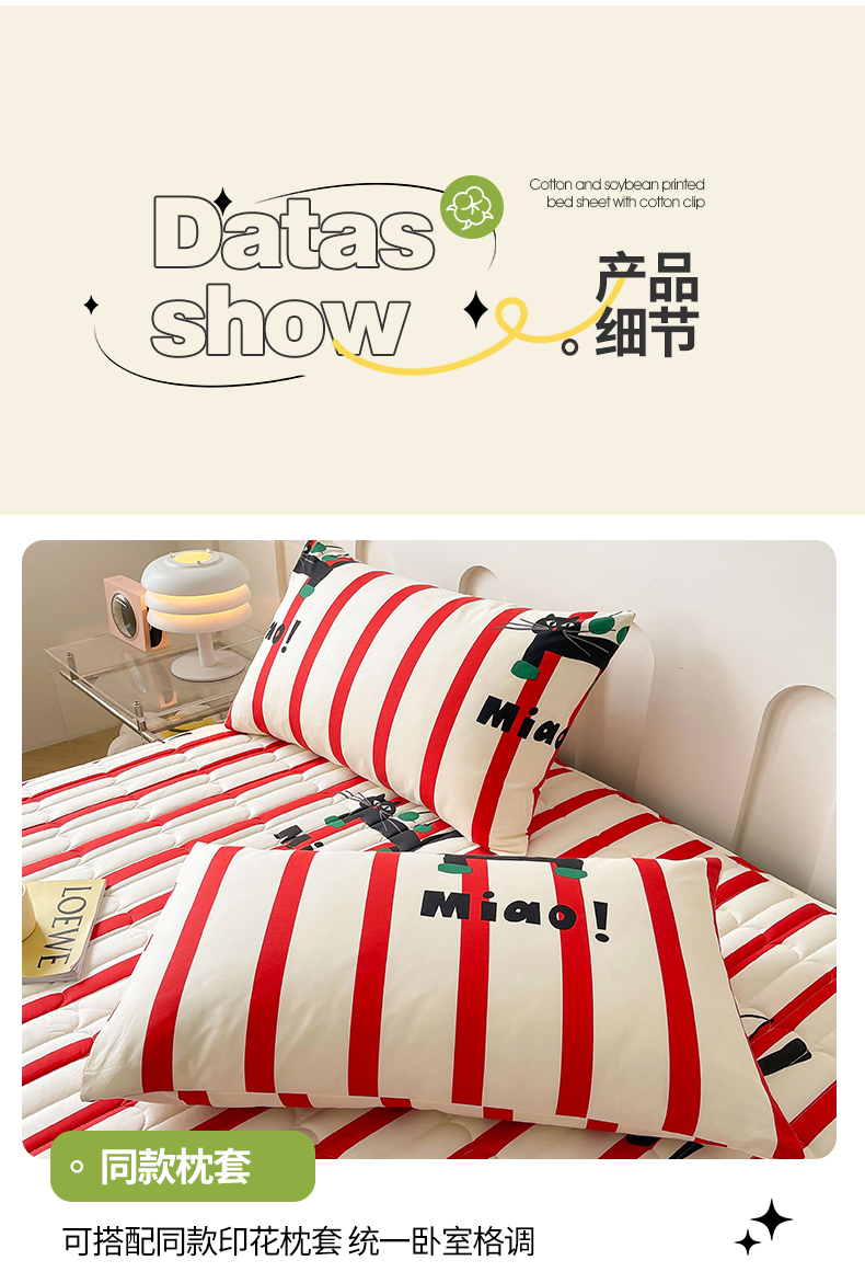 3C 2024新款全棉13372大豆夹棉印花花边床笠四件套 黑猫警长单床笠