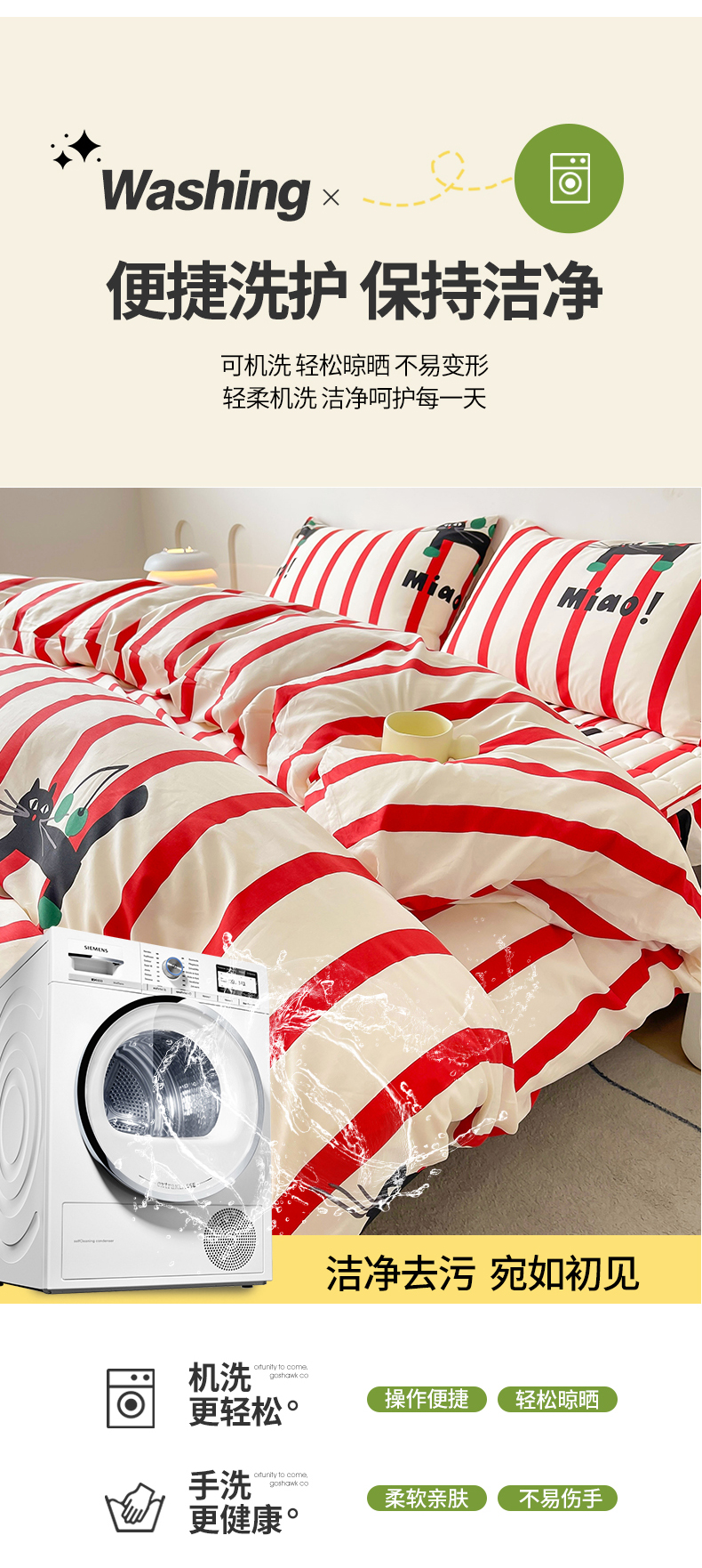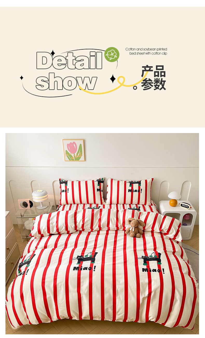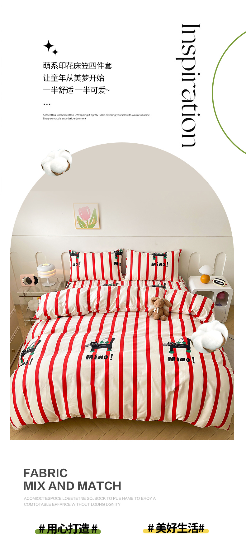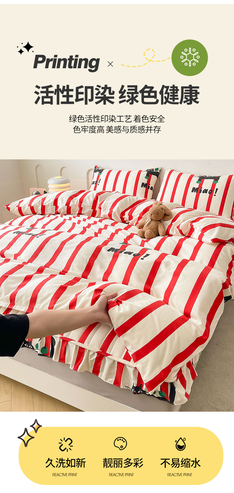 3C 2024新款全棉13372大豆夹棉印花花边床笠四件套 黑猫警长单床笠