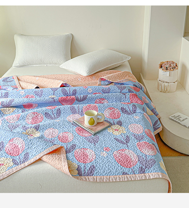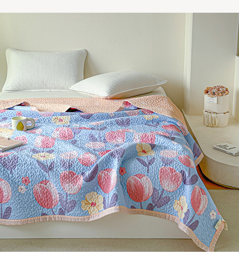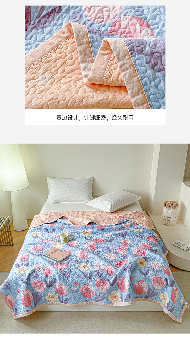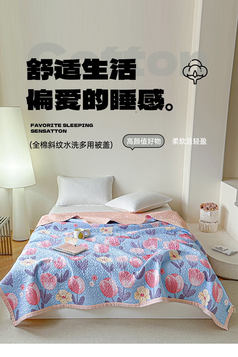 源舜家纺 2025新款全棉斜纹水洗印花多用被盖 郁金香