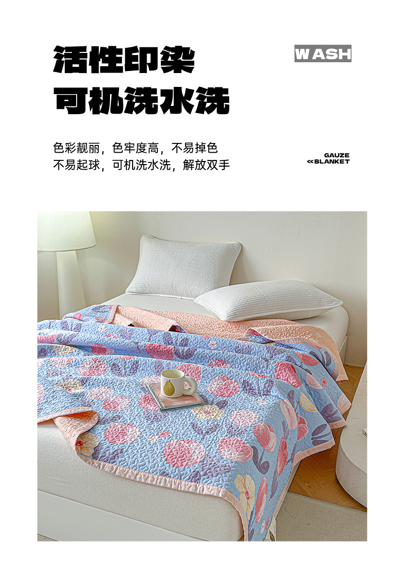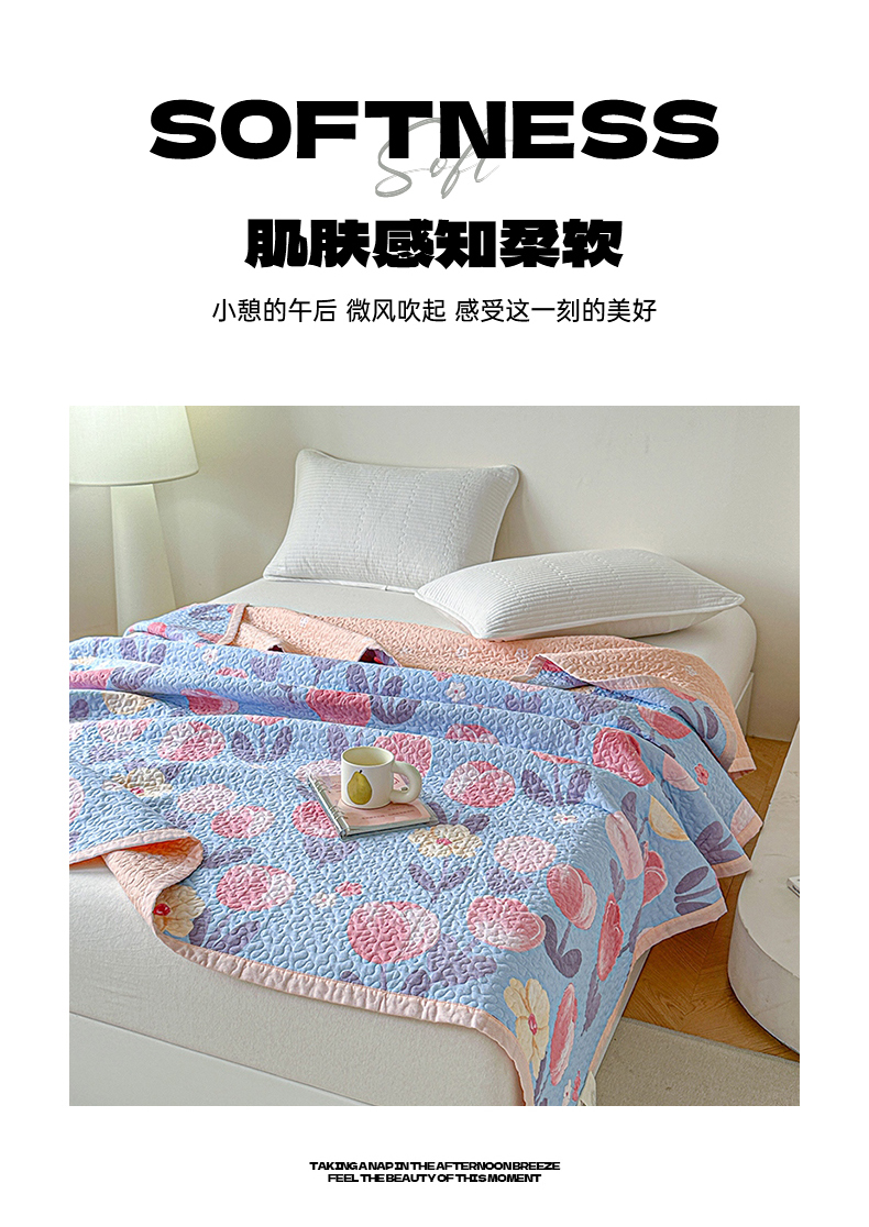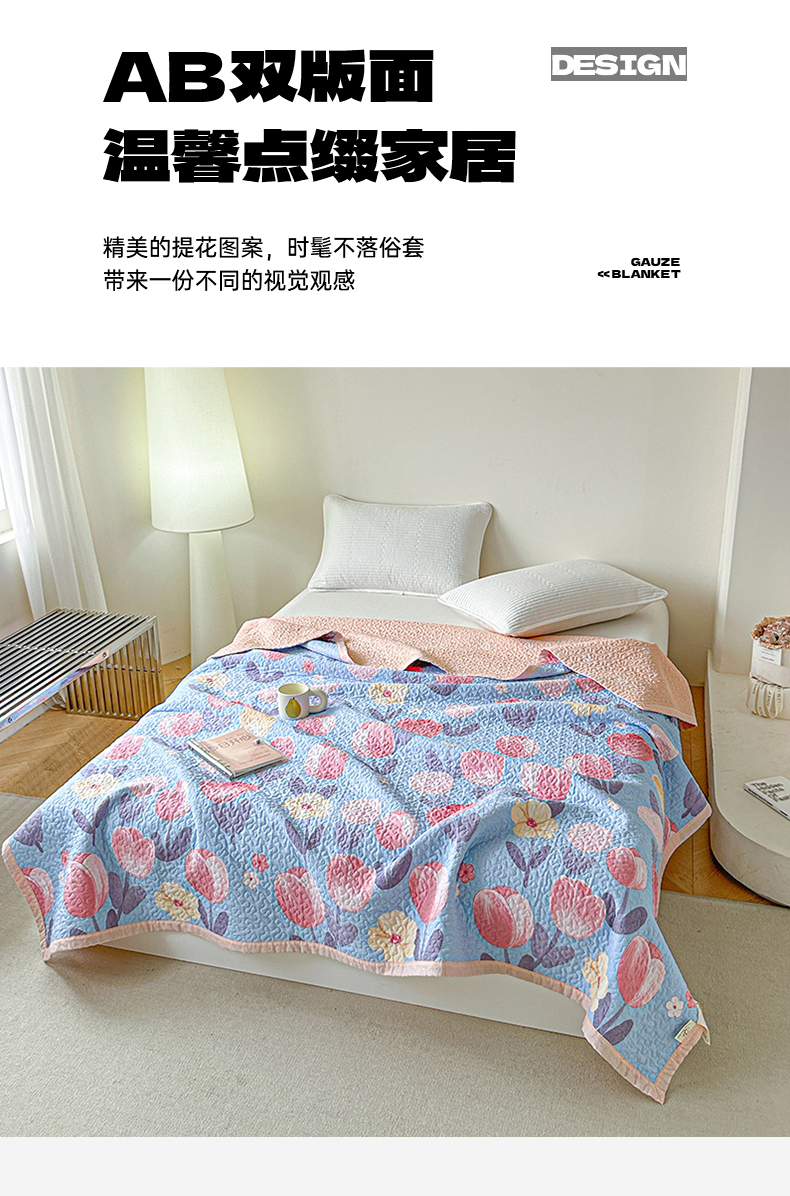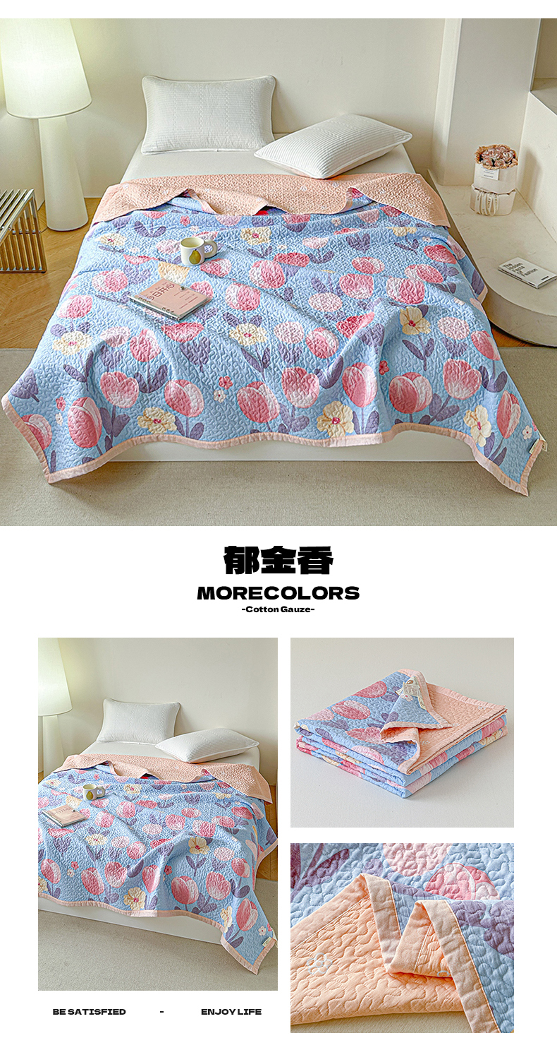 源舜家纺 2025新款全棉斜纹水洗印花多用被盖 郁金香