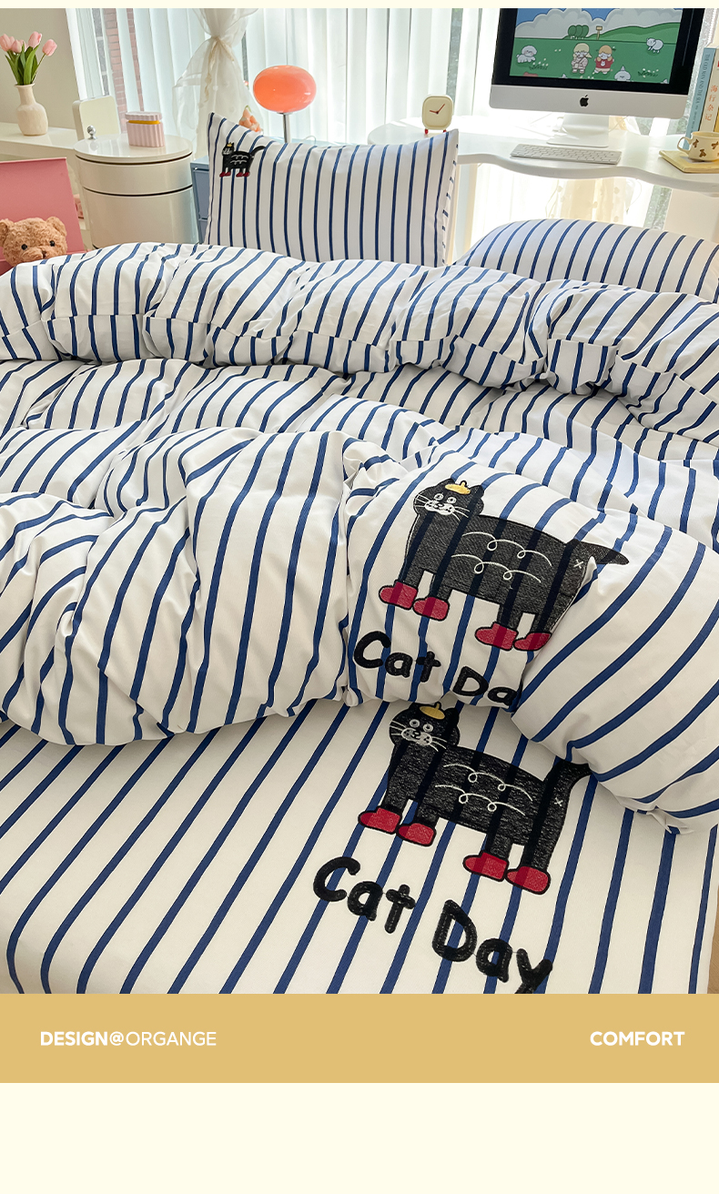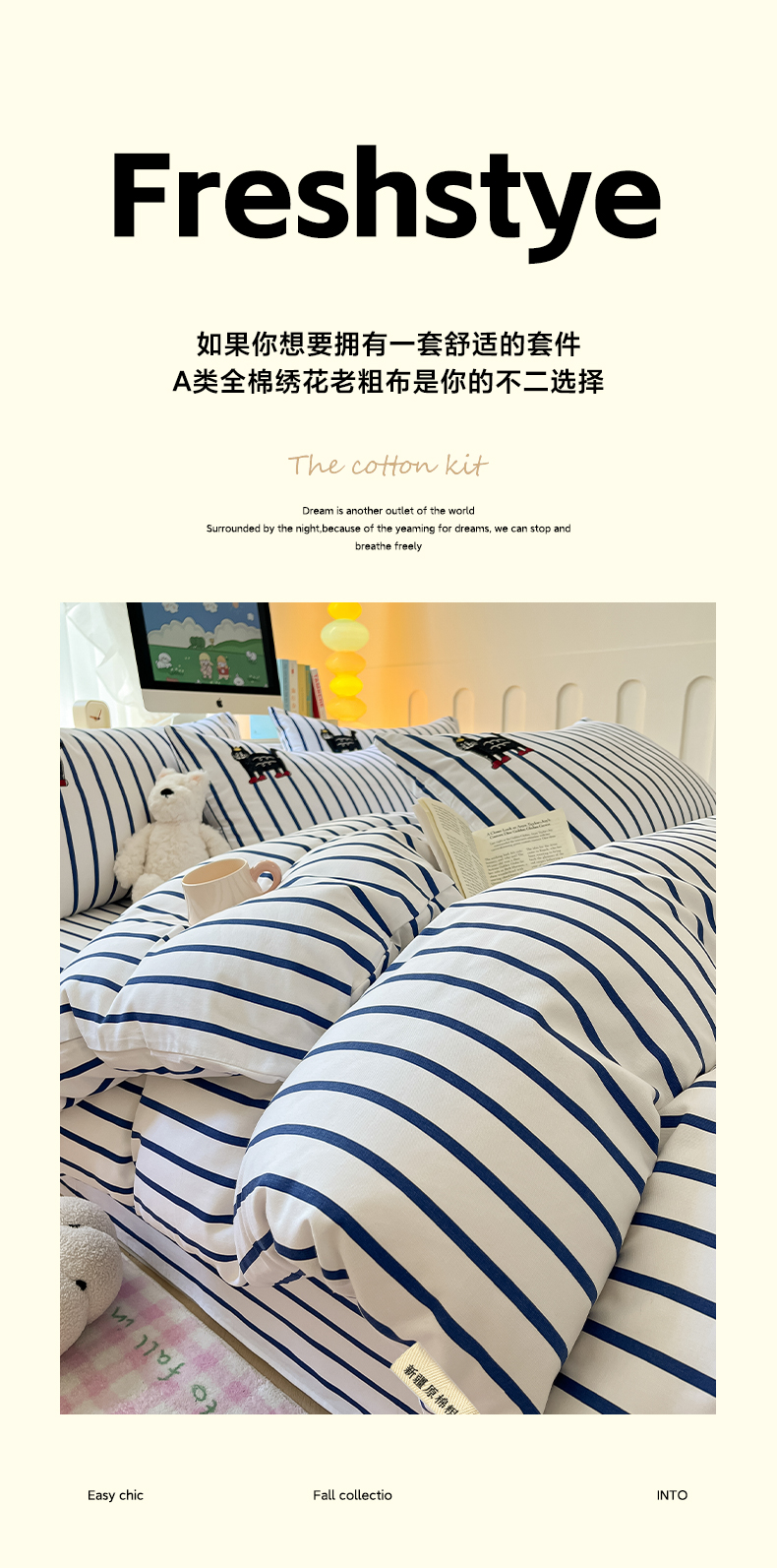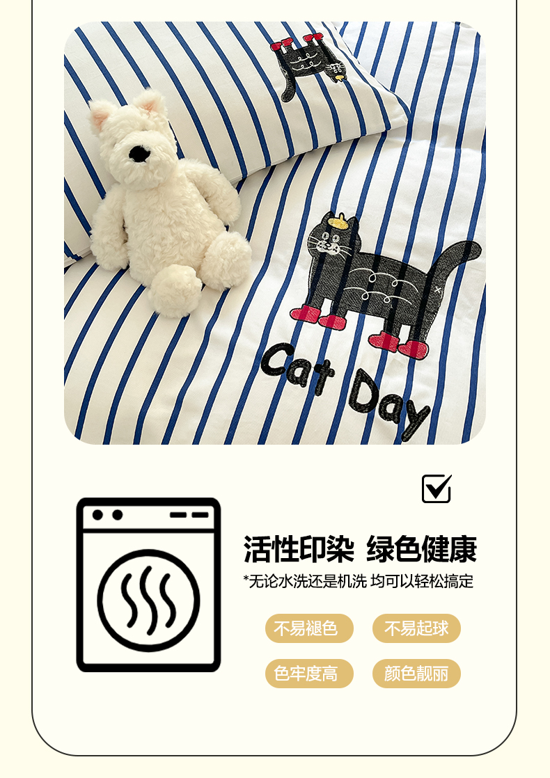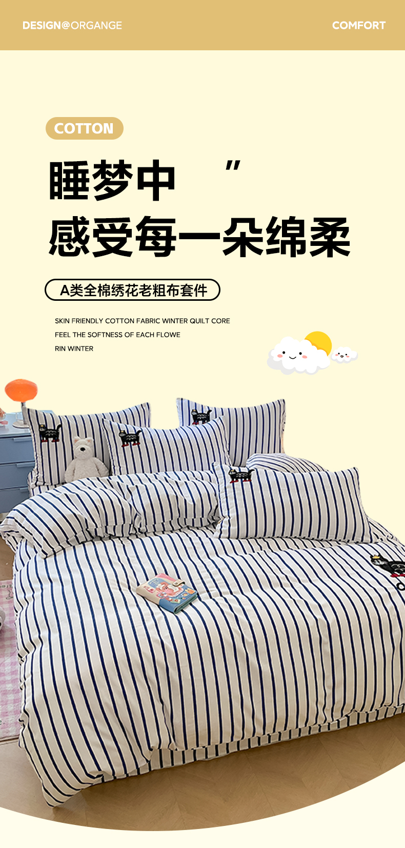 当前位置: 91家纺网 > 商品网购 > 床品套件 > 四件套 > 全棉普通四件套 > 雅居纺 2024新款全棉绣花老粗布单被套四件套 小猫咪