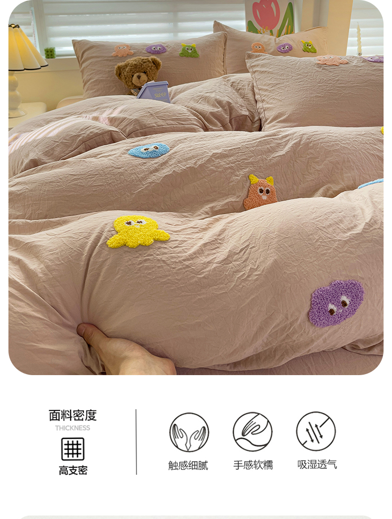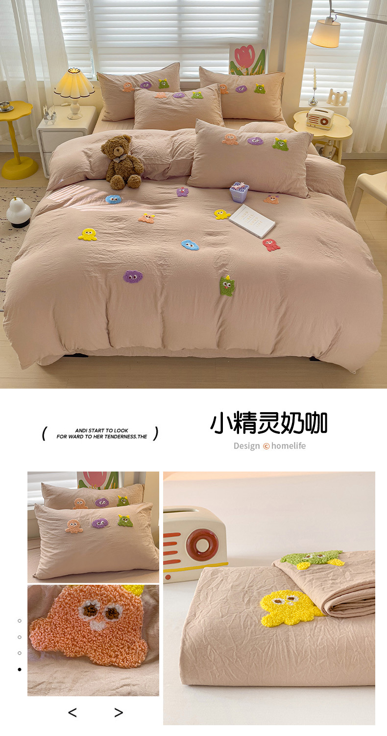 商品名称:韩巢家纺 2024热款超柔水洗棉毛巾绣单件被套-小精灵系列(提供精美卖家秀 ) 小精灵奶咖